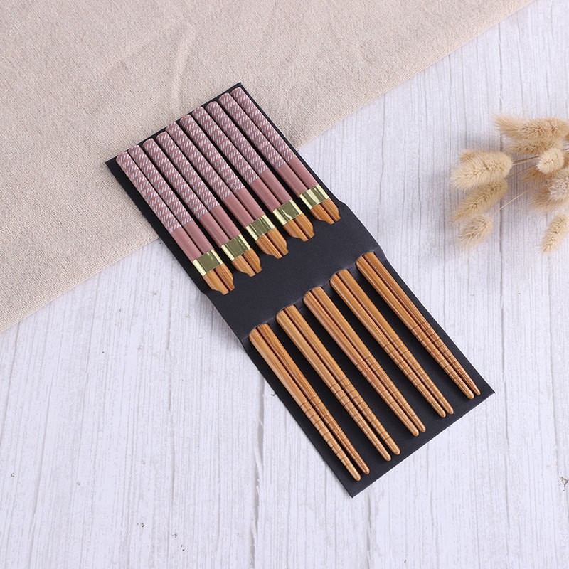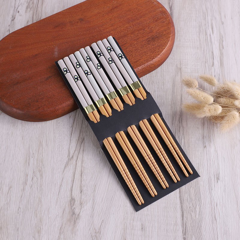 solid color with pattern 5 pairs printed bamboo chopsticks