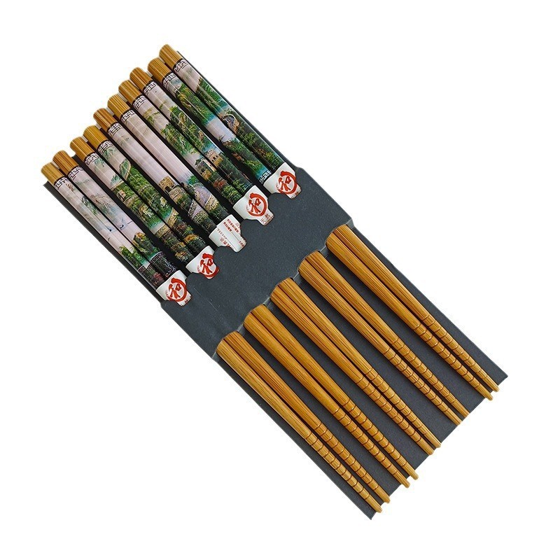 landscape picturesque 5 pairs printed bamboo chopsticks