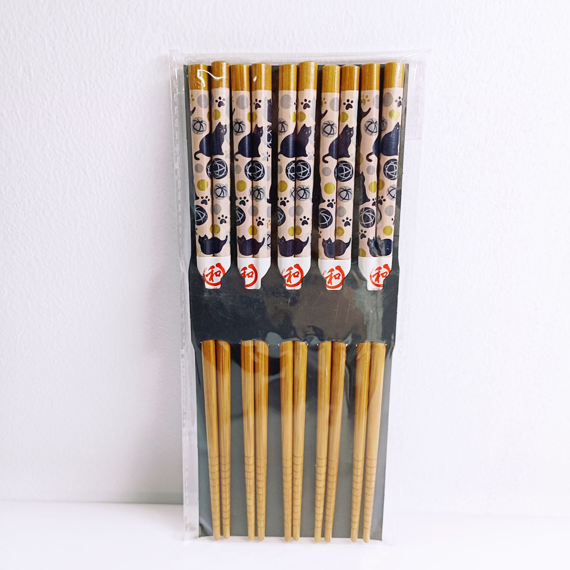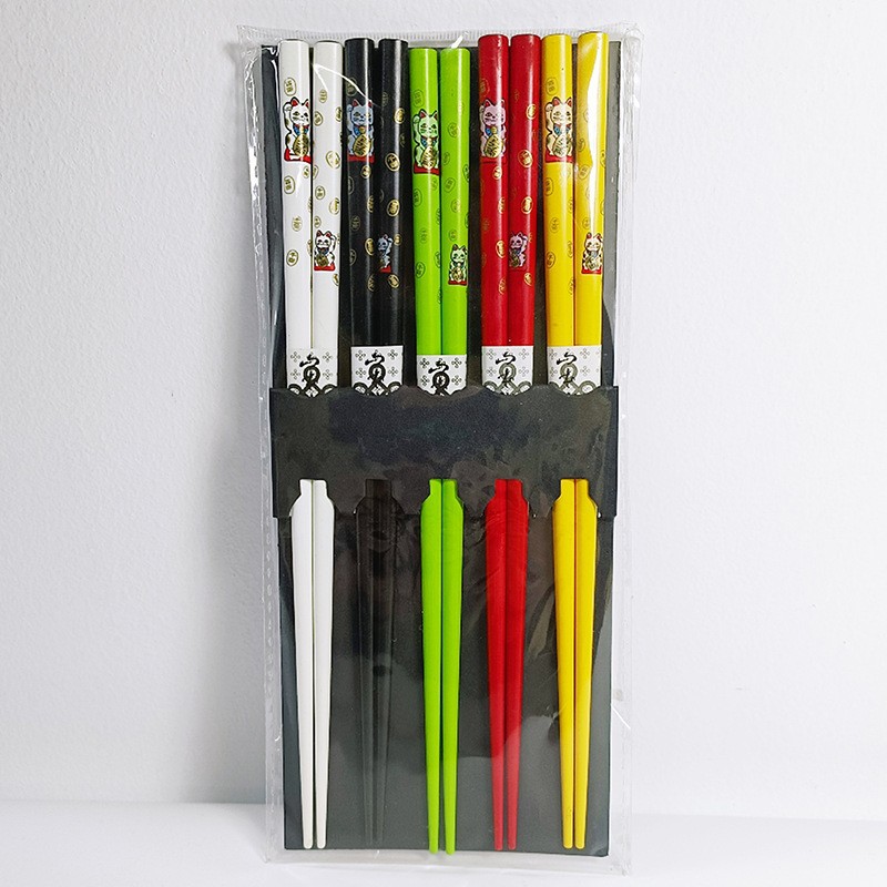 lucky cat 5 pairs printed bamboo chopsticks