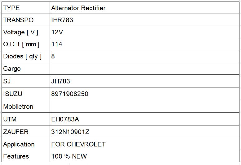 alternator rectifier ihr783 8971908250 jh783 eh0783a 312n10901z for chevrolet 中文版
