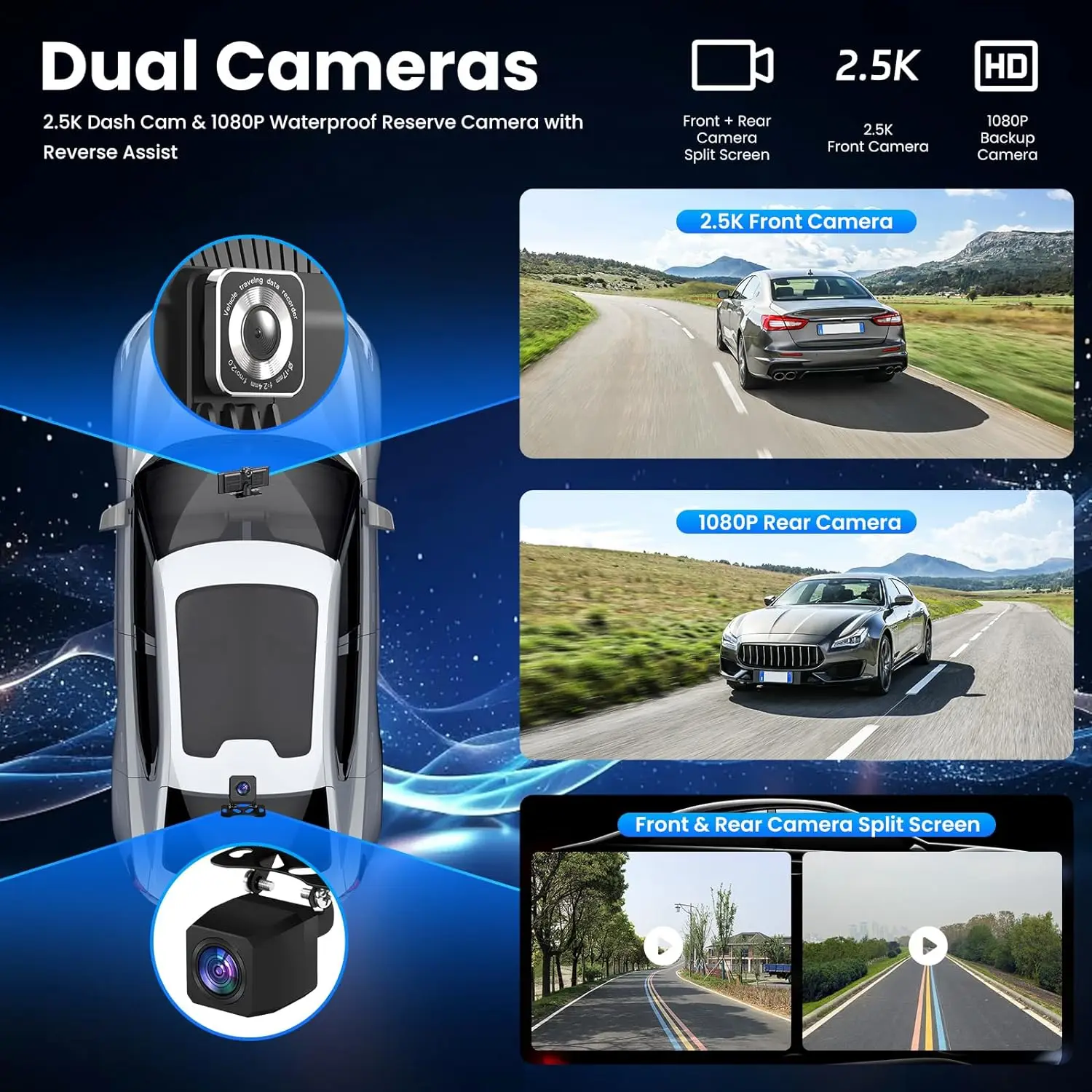 ✅【Built-in 2.5K Front + Rear 1080P Dual Camera Dash Cam】