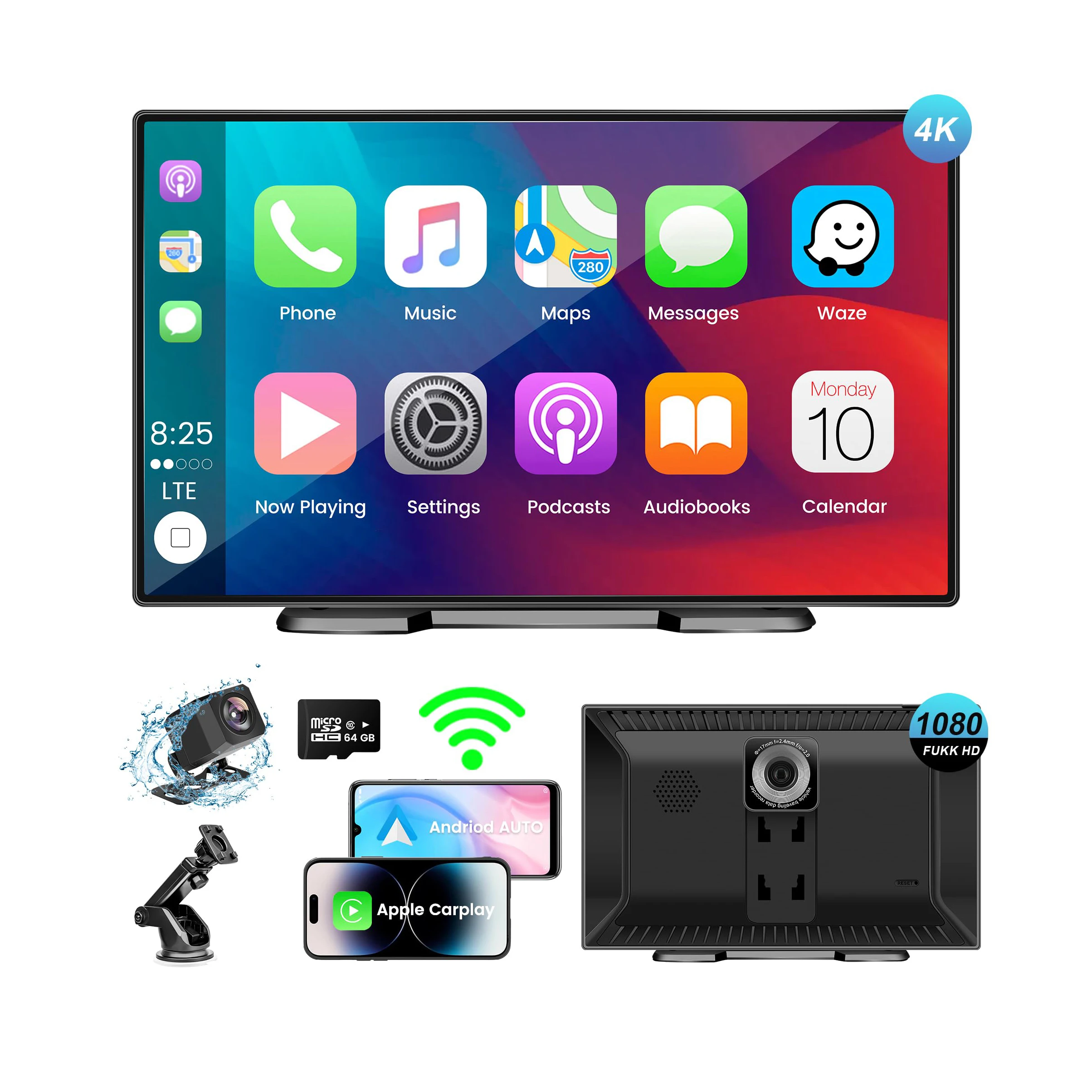 The car display is equipped with front 2.5K 175° wide-angle lens car recorder and comes with a 1080P rear view camera, ensuring a clear view of what's behind you for safer reversing and parking. With dual-screen recording capabilities, both the front and rear views can be recorded simultaneously, giving you a complete and accurate record of your journeys.