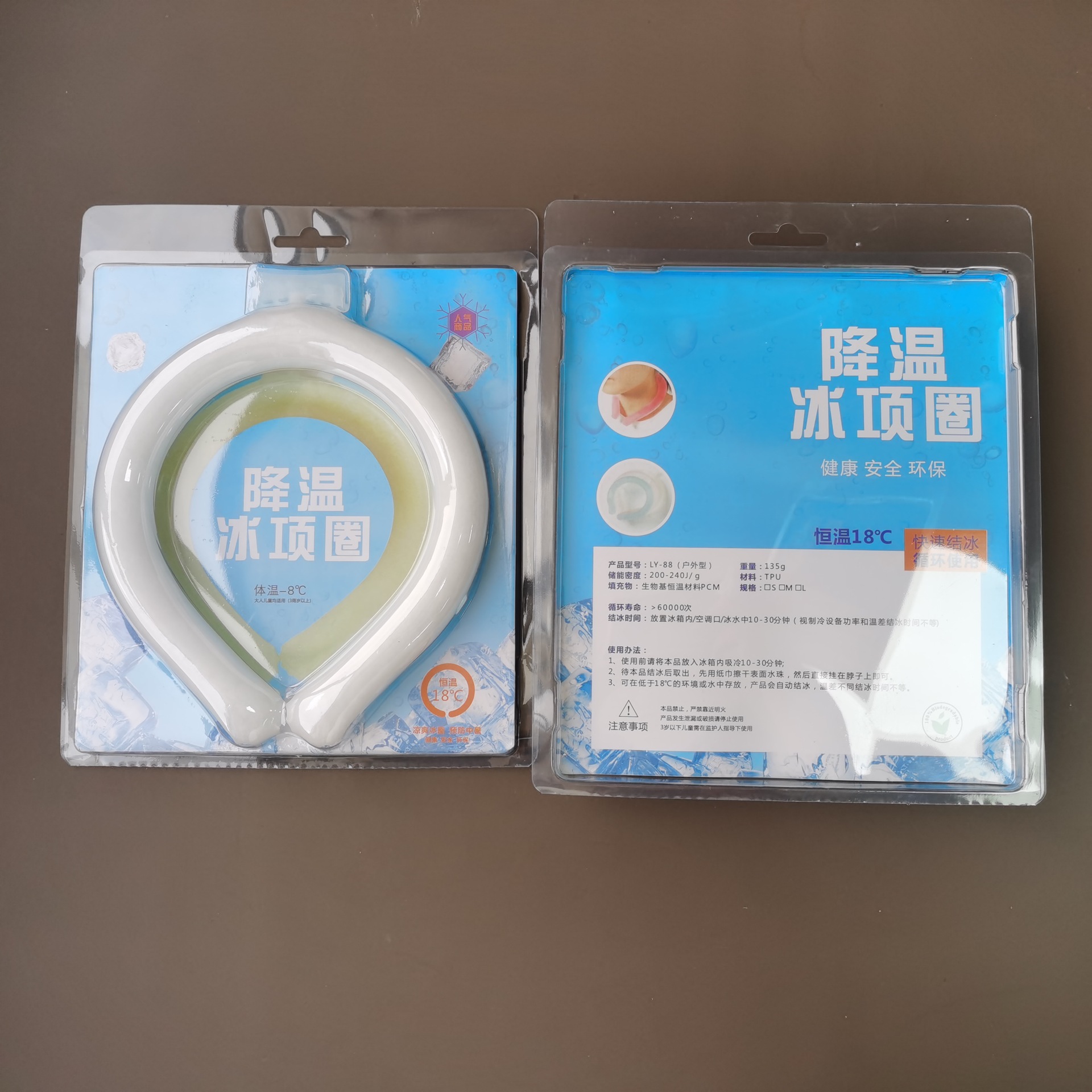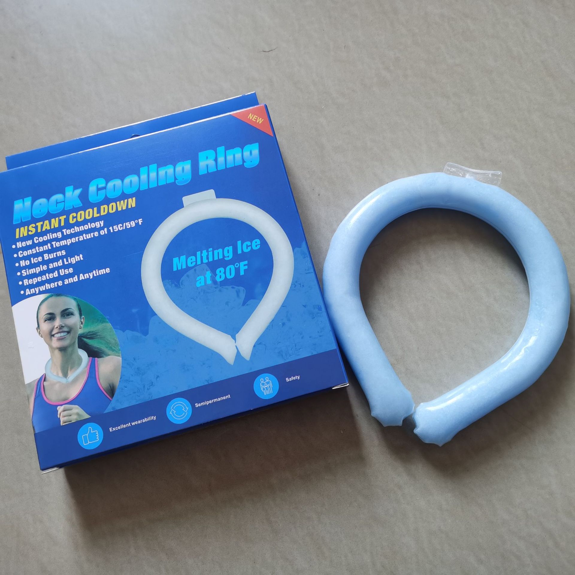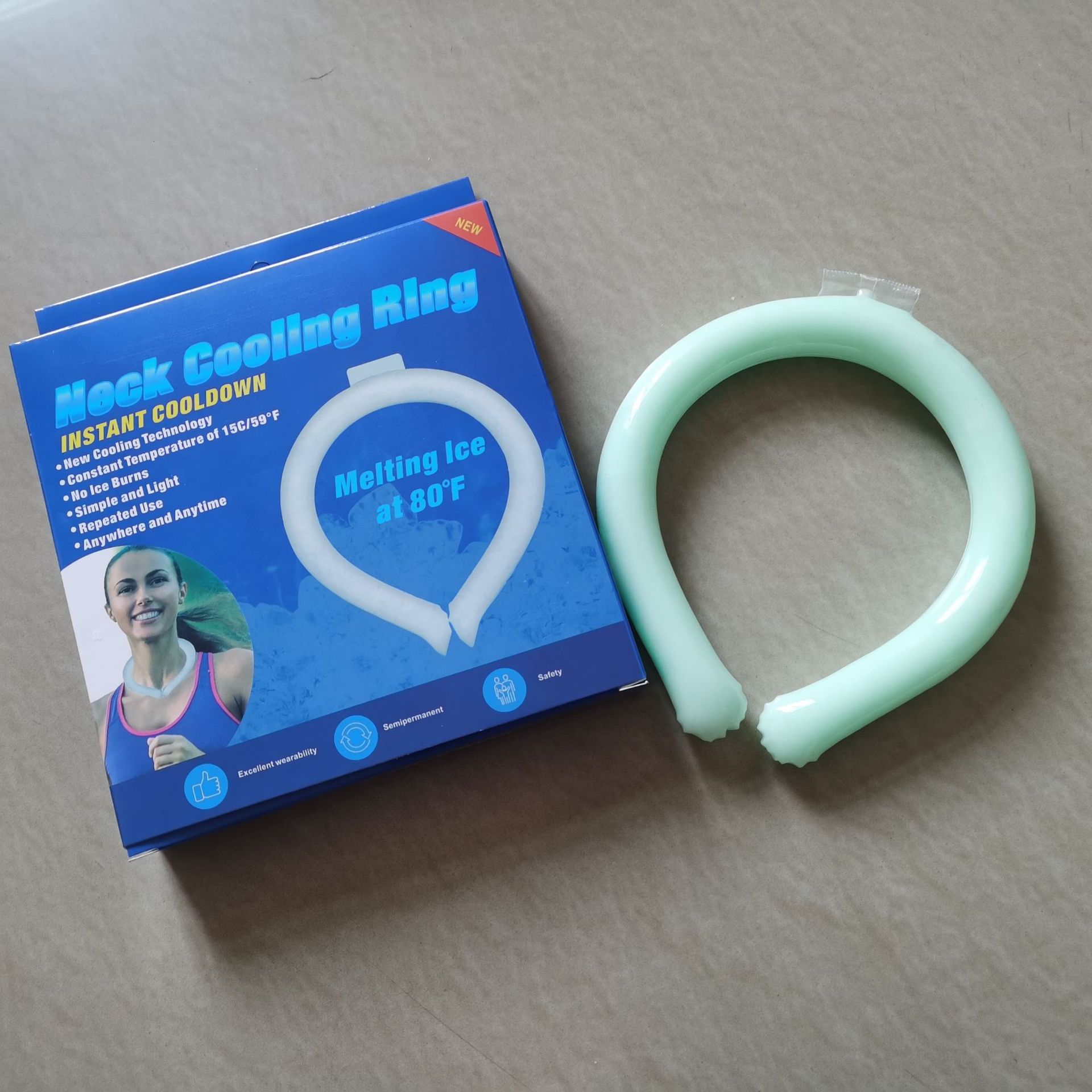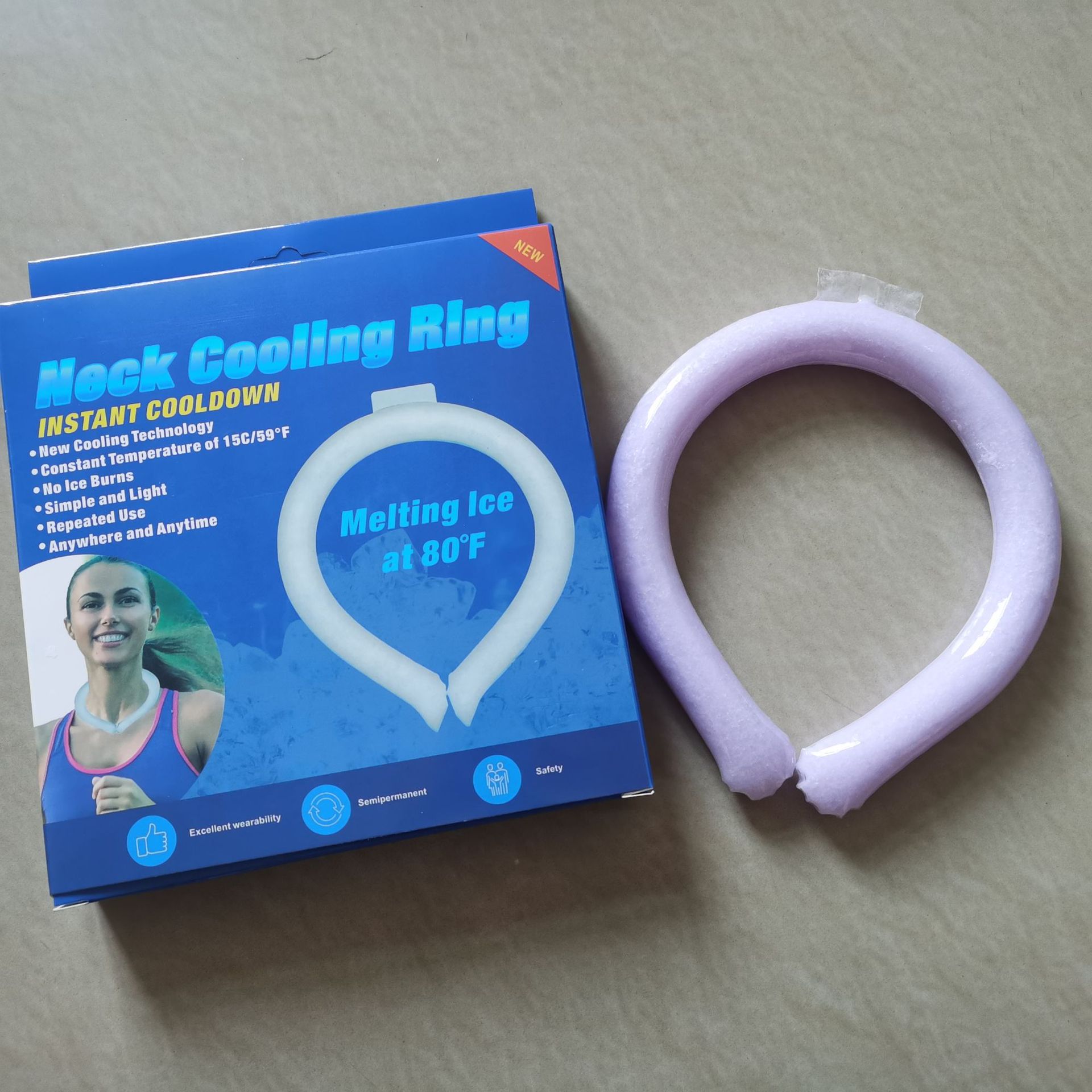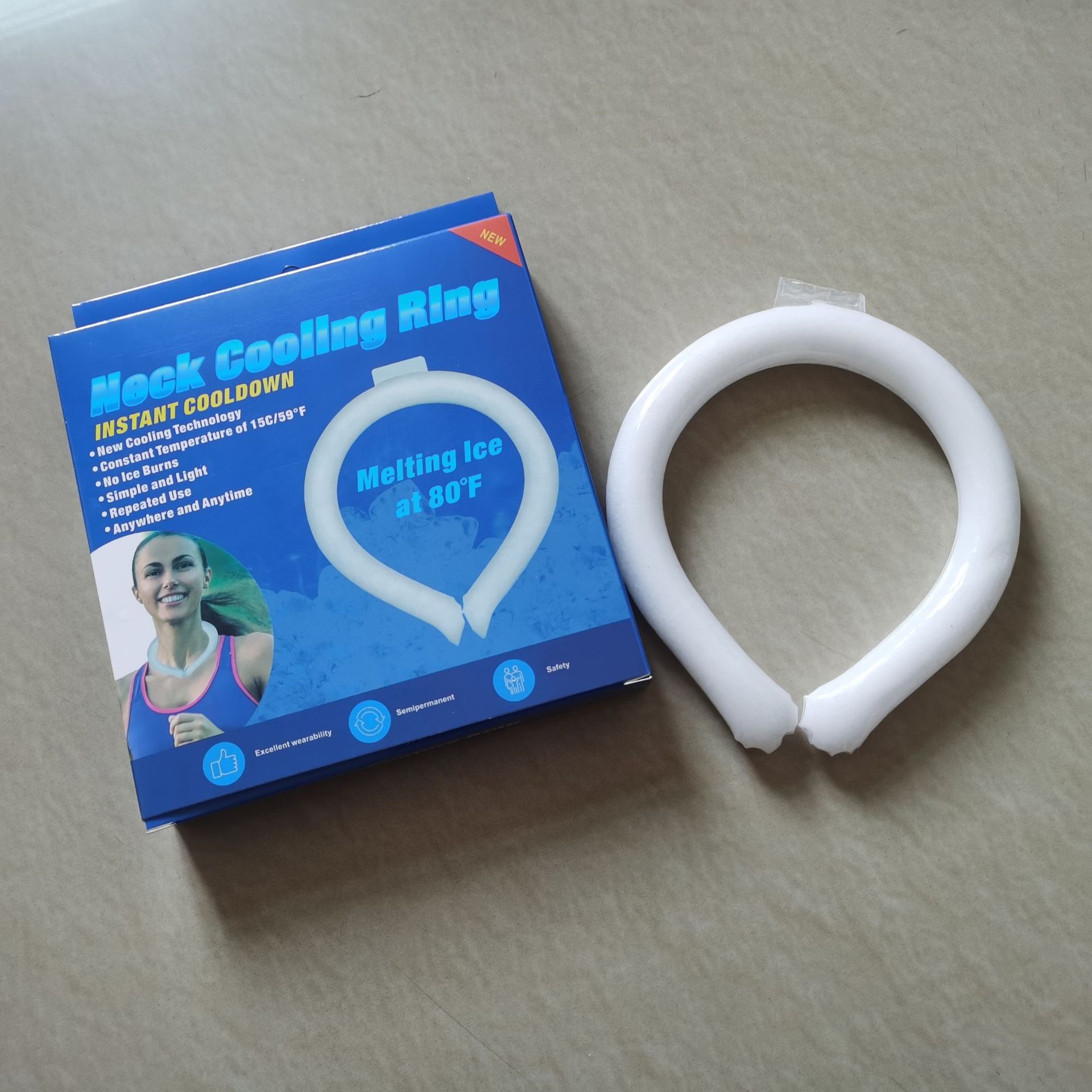 18°C Ice Circle, Usage: Hang it around your neck and it will maintain a cool feeling of 18°C for about 30-40 minutes. It is cool but not icy, and the surface of the product will not condense water to maintain dryness. It can be reused. When the cool circle is in a liquid state, you can put it in the freezer or blow it with the air conditioner for about 20 minutes to restore its ice crystal state, and it can be used for another few dozen minutes until it becomes liquid again. Compared to traditional cooling products like small fans, the advantages of this product are: no need to charge, reusable, can be made into different colors/shapes, frees your hands, compact and portable.
