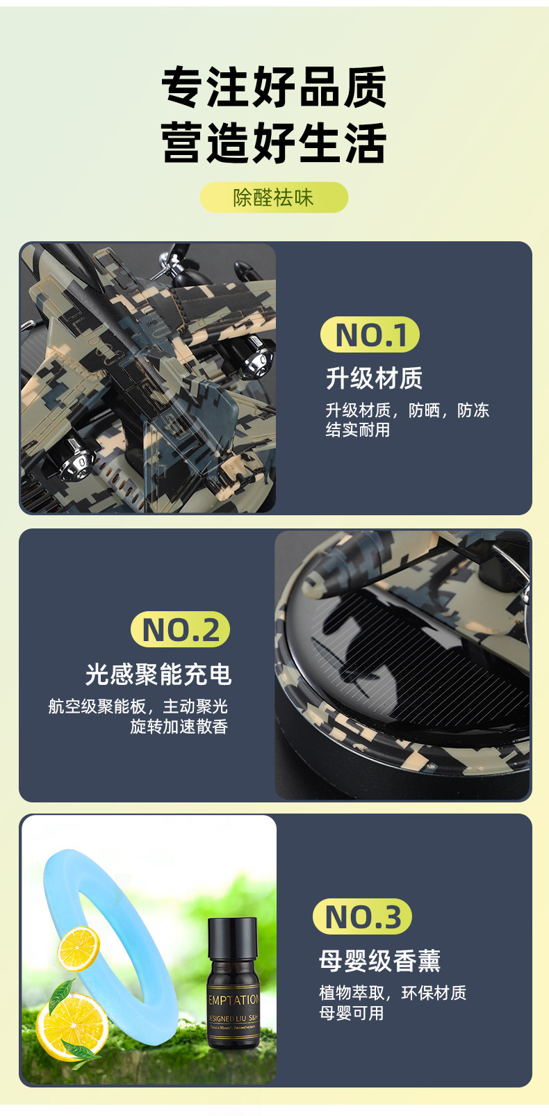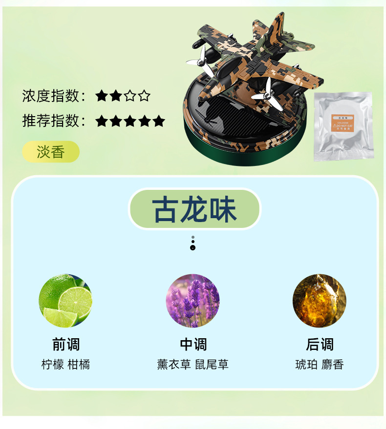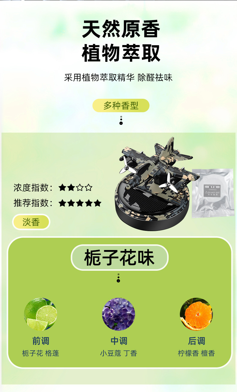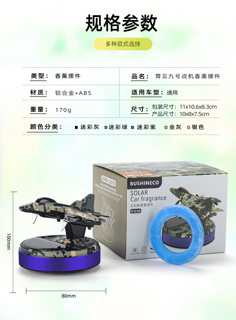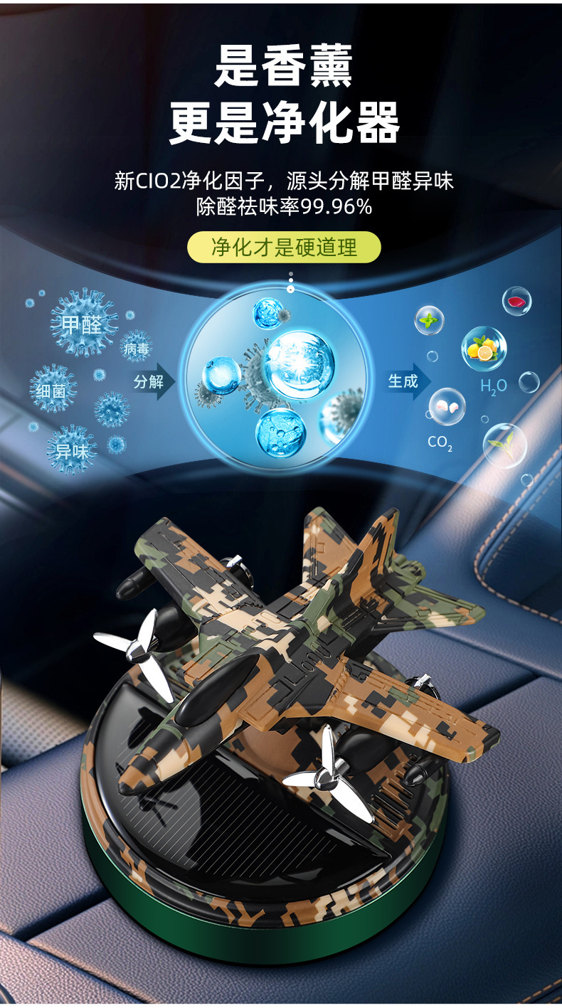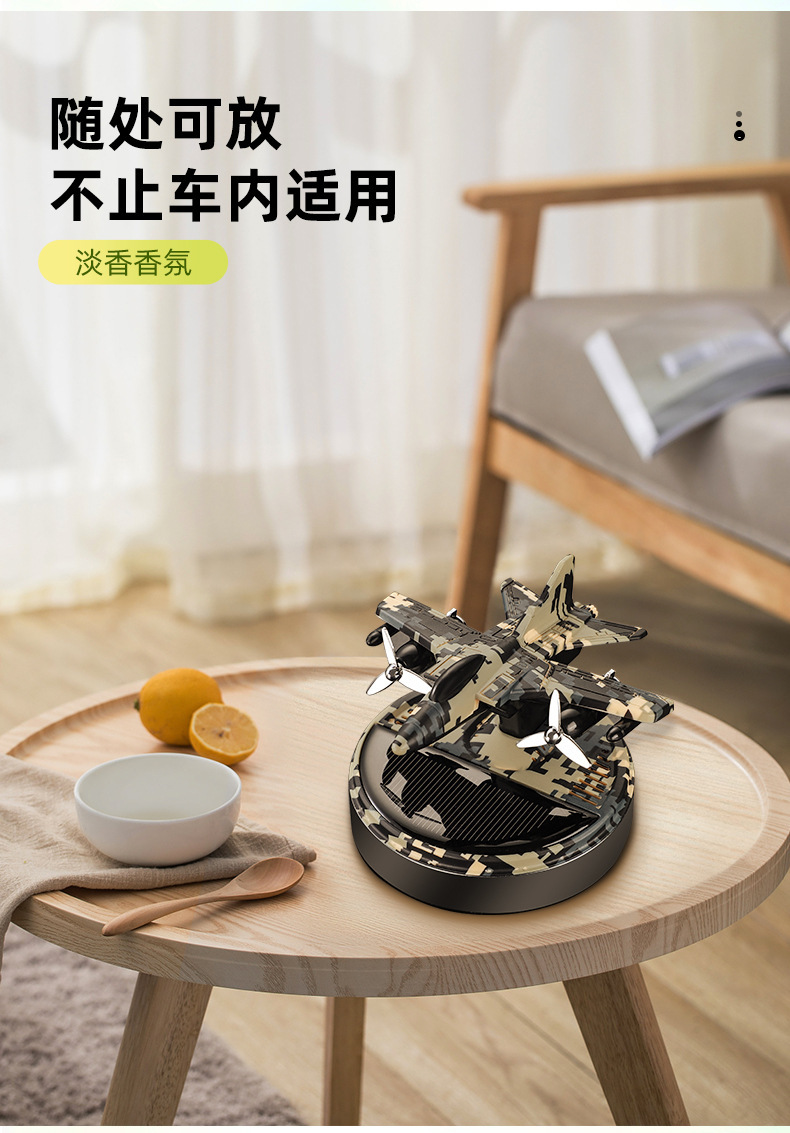 new solar rotating helicopter aromatherapy creative car camouflage aircraft perfume seating decoration car perfume 中文版