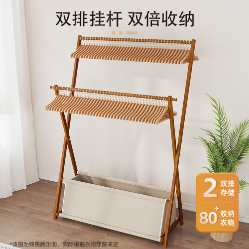 floor simple clothes hanger bedroom folding storage bamboo wood household indoor small clothes storage coat rack 中文版