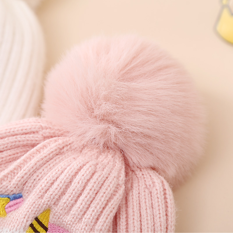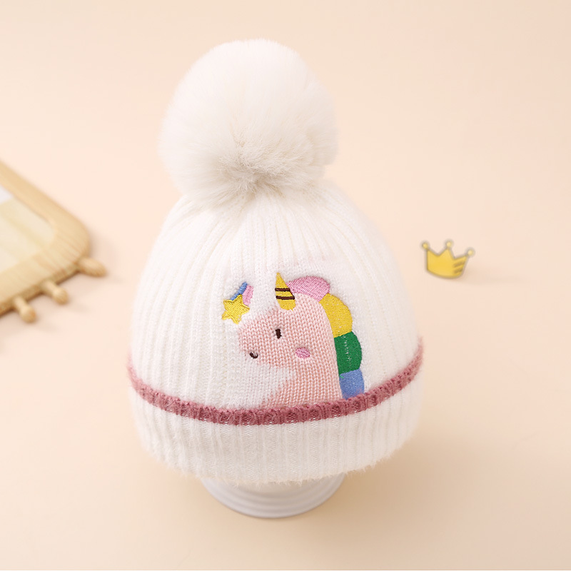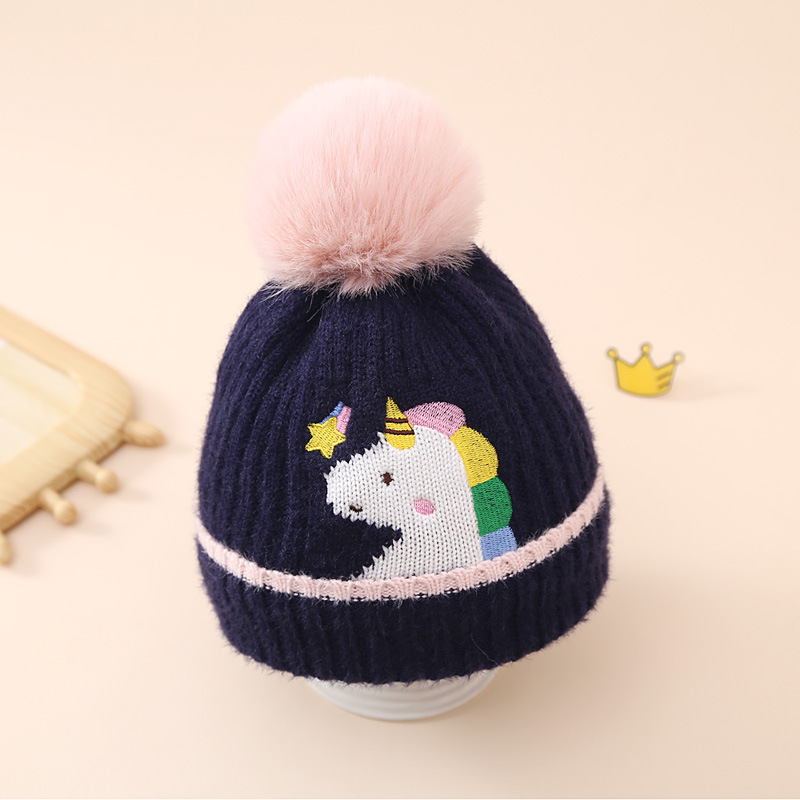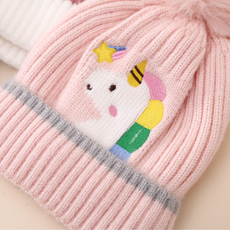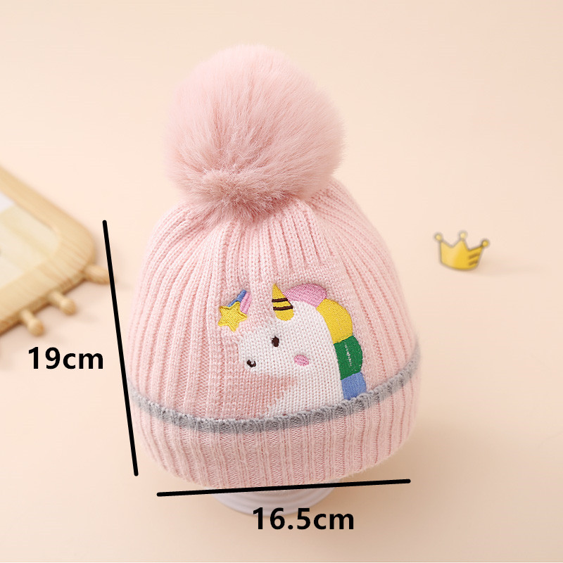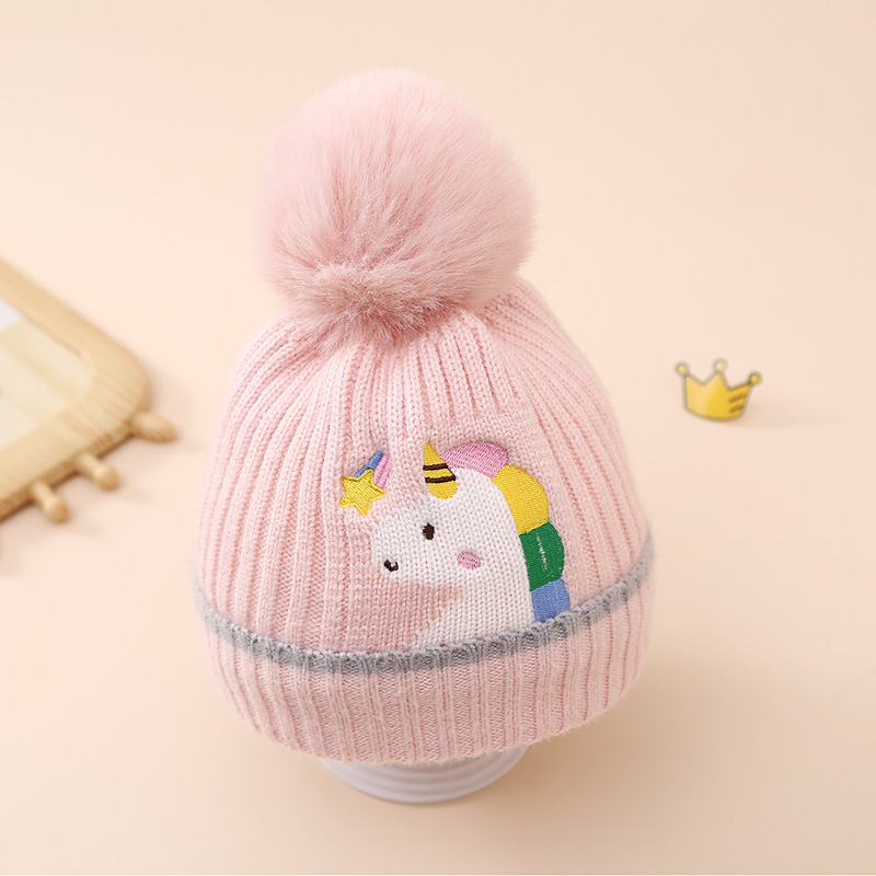 帽子品名:跨境亚马逊冬季儿童独角兽针织帽加绒加厚毛球卡通毛线帽女童帽子