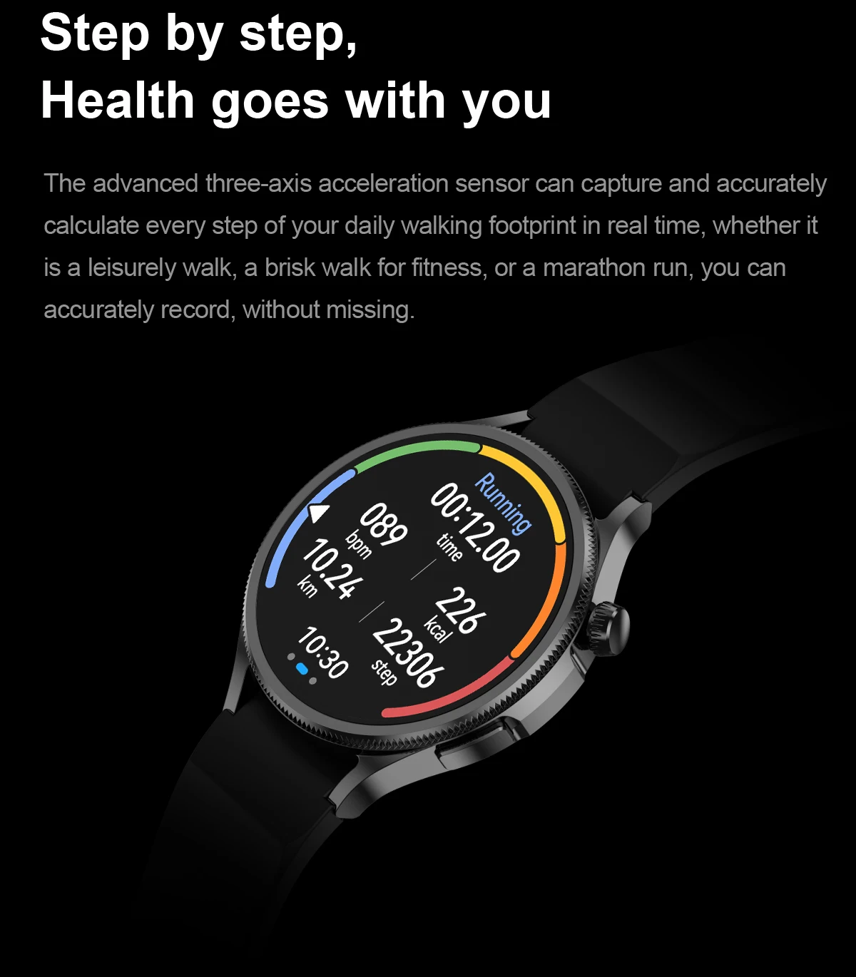 Steps counting、Sleep monitoring、Heart rate、Blood pressure、Sedentary reminder