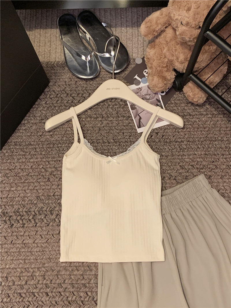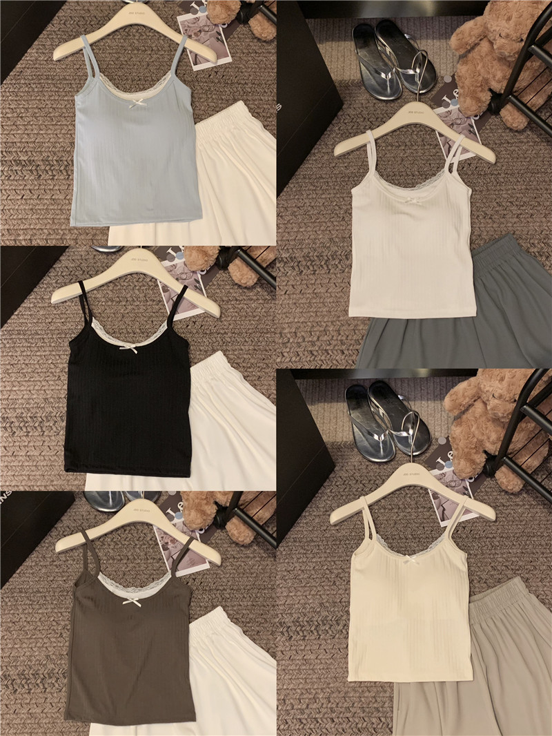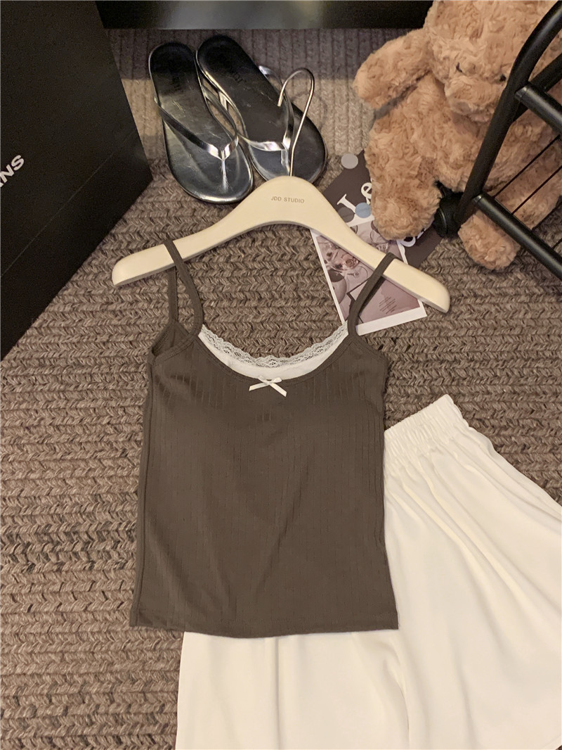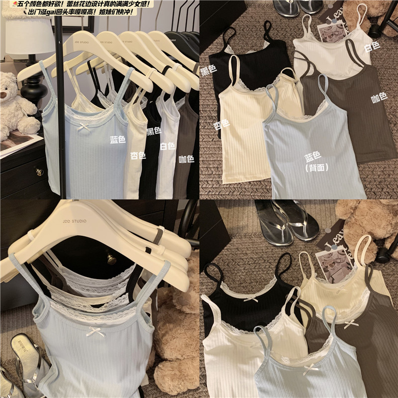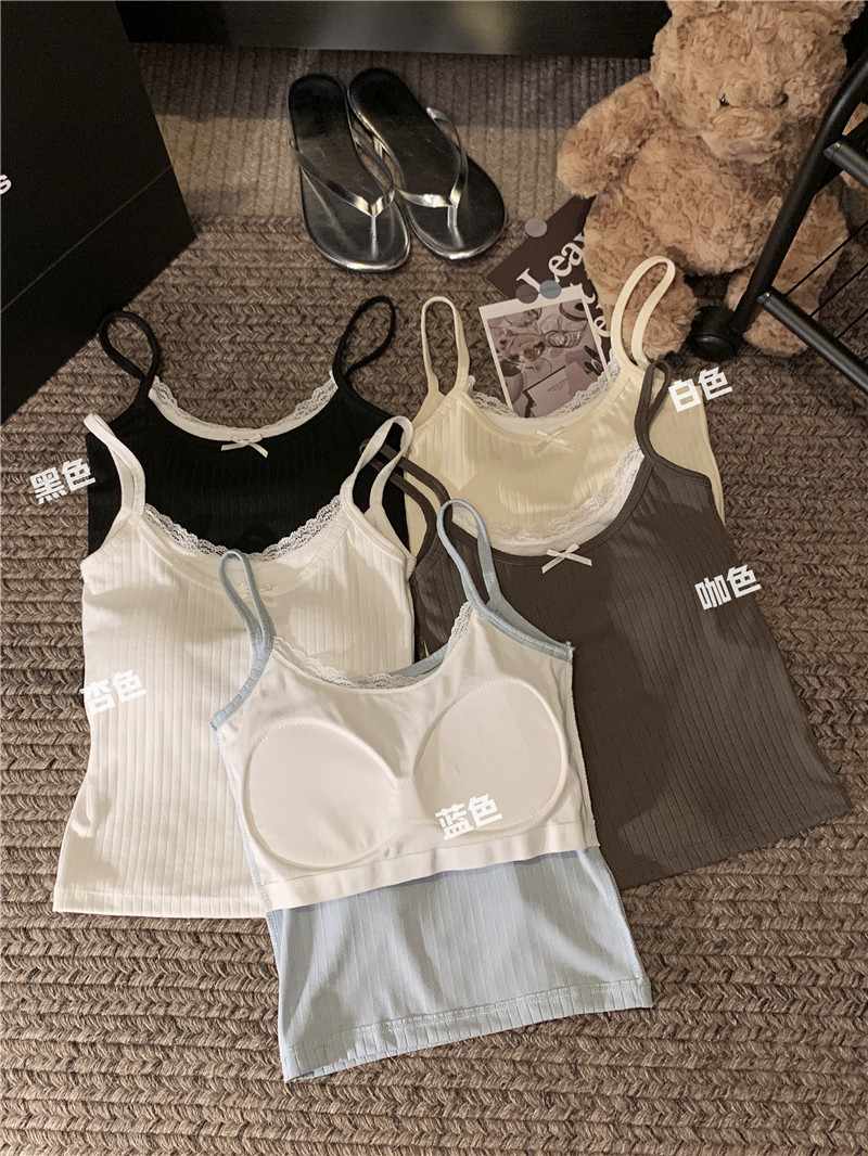 fake two-piece suspender vest women's inner wear 2024 new outdoor lace back shaping padded one-piece top