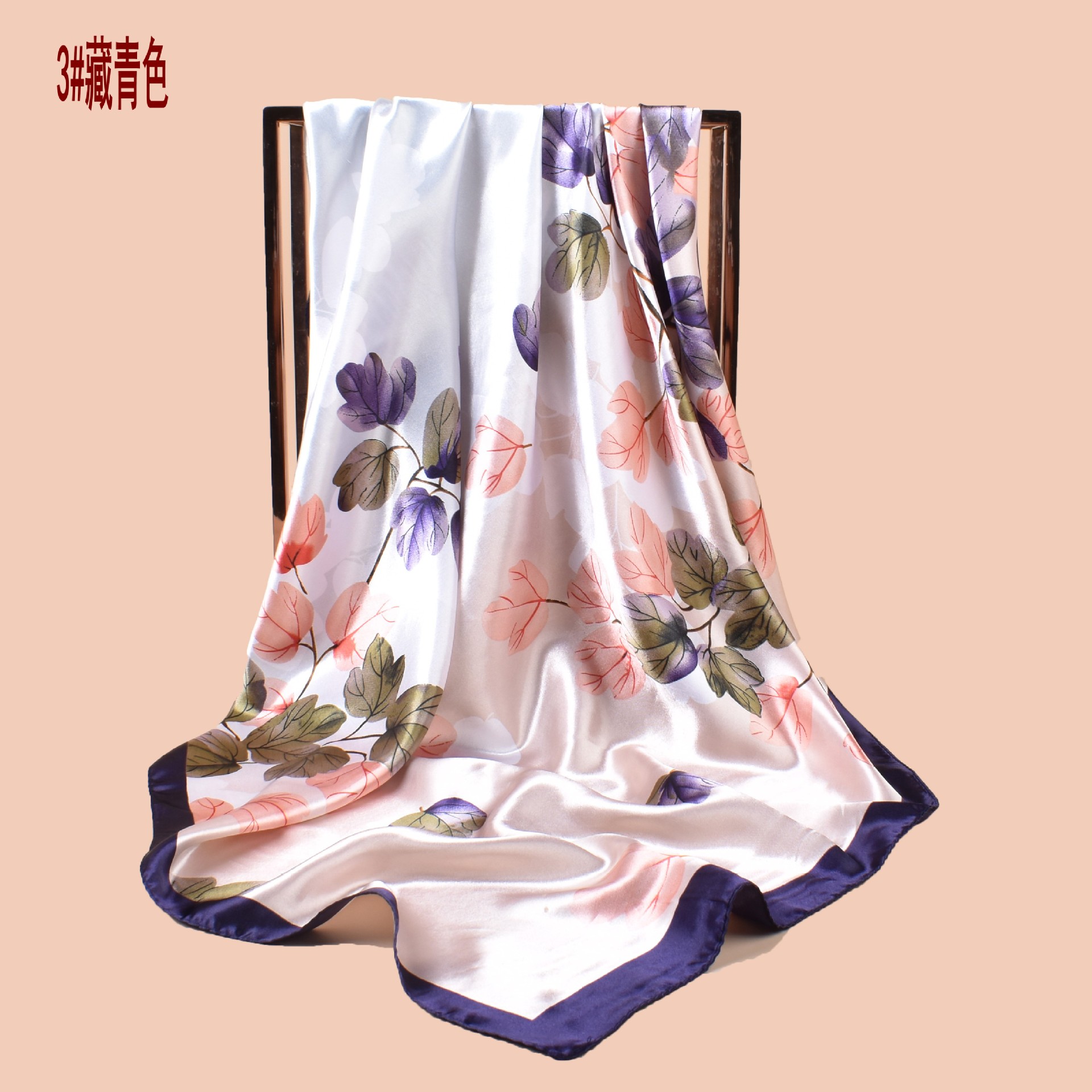 new 90*90 satin leaf printed large kerchief outer sun protection closed toe silk scarf decoration scarf wholesale