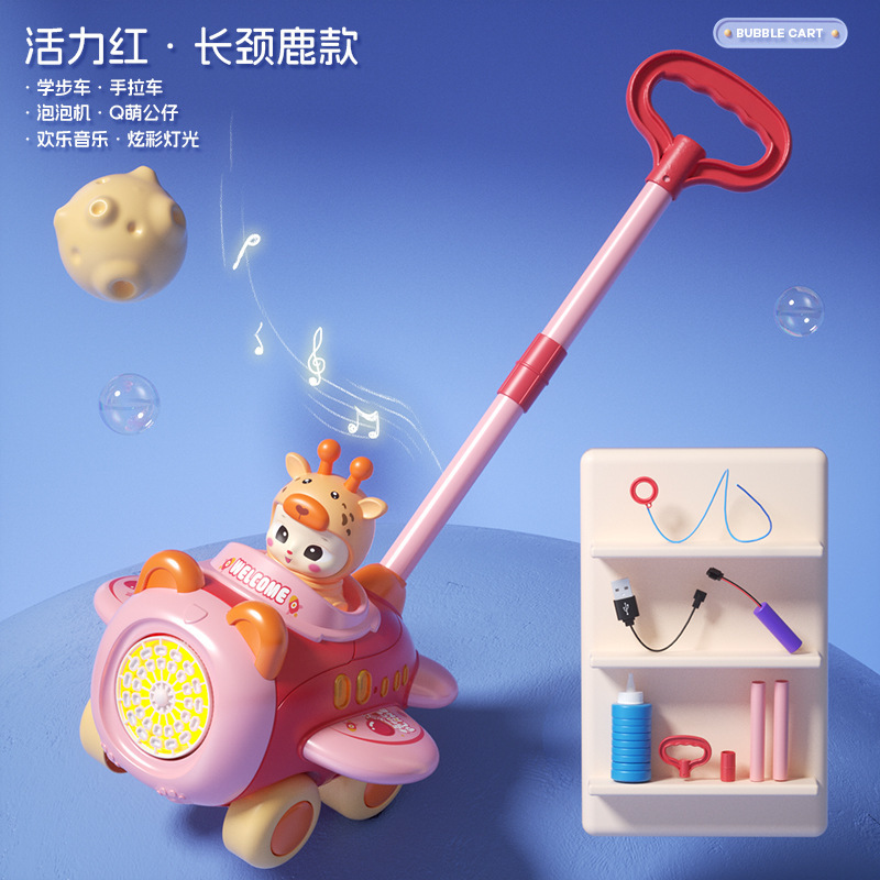 deer bubble trolley [hand push rechargeable-pink]]