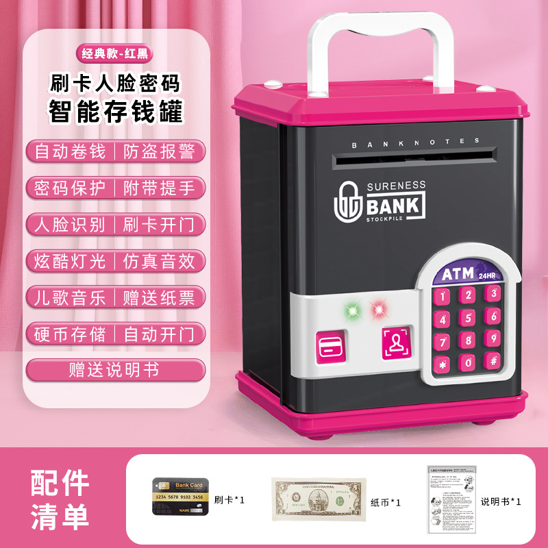 simulation atm coin bank [automatic money roll] pink 6913
