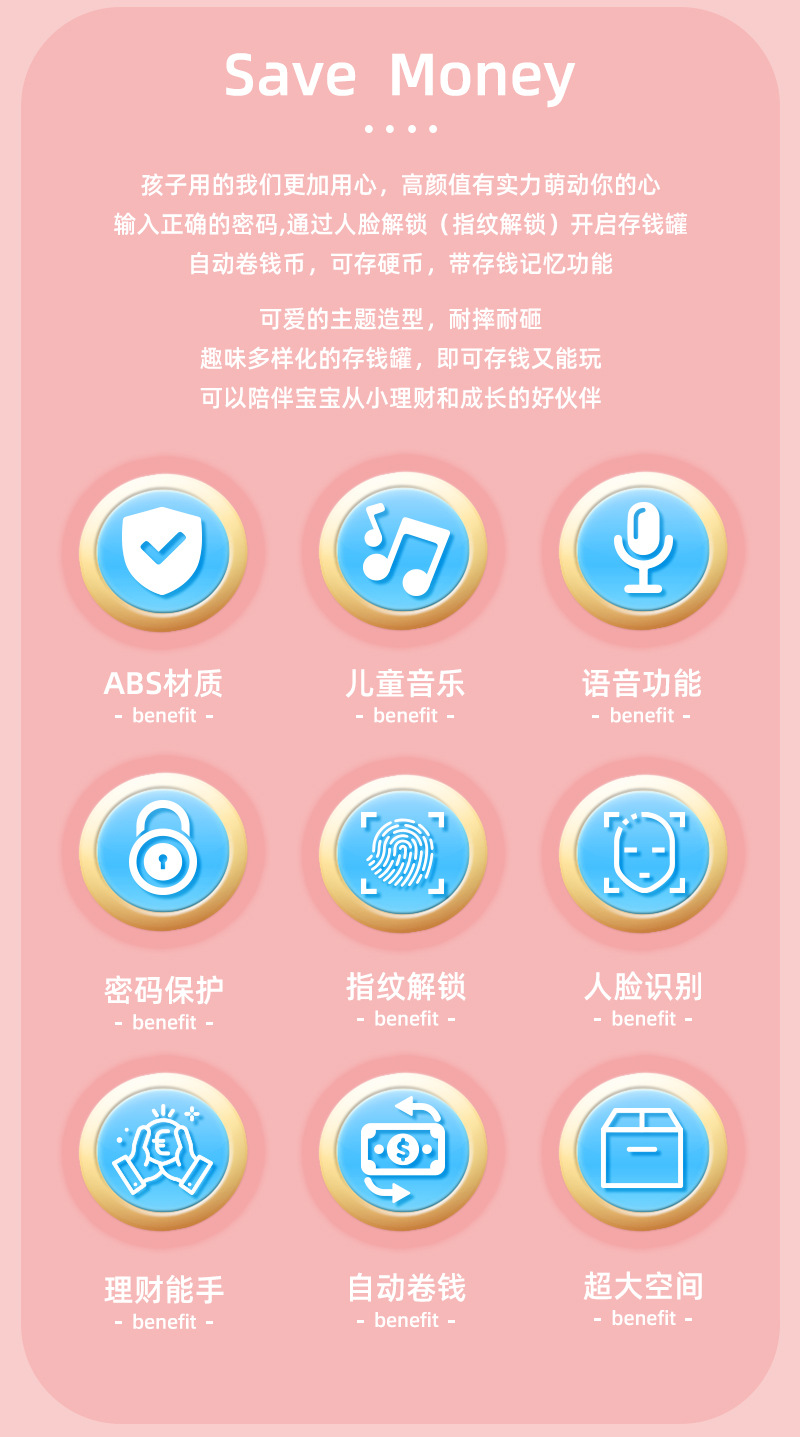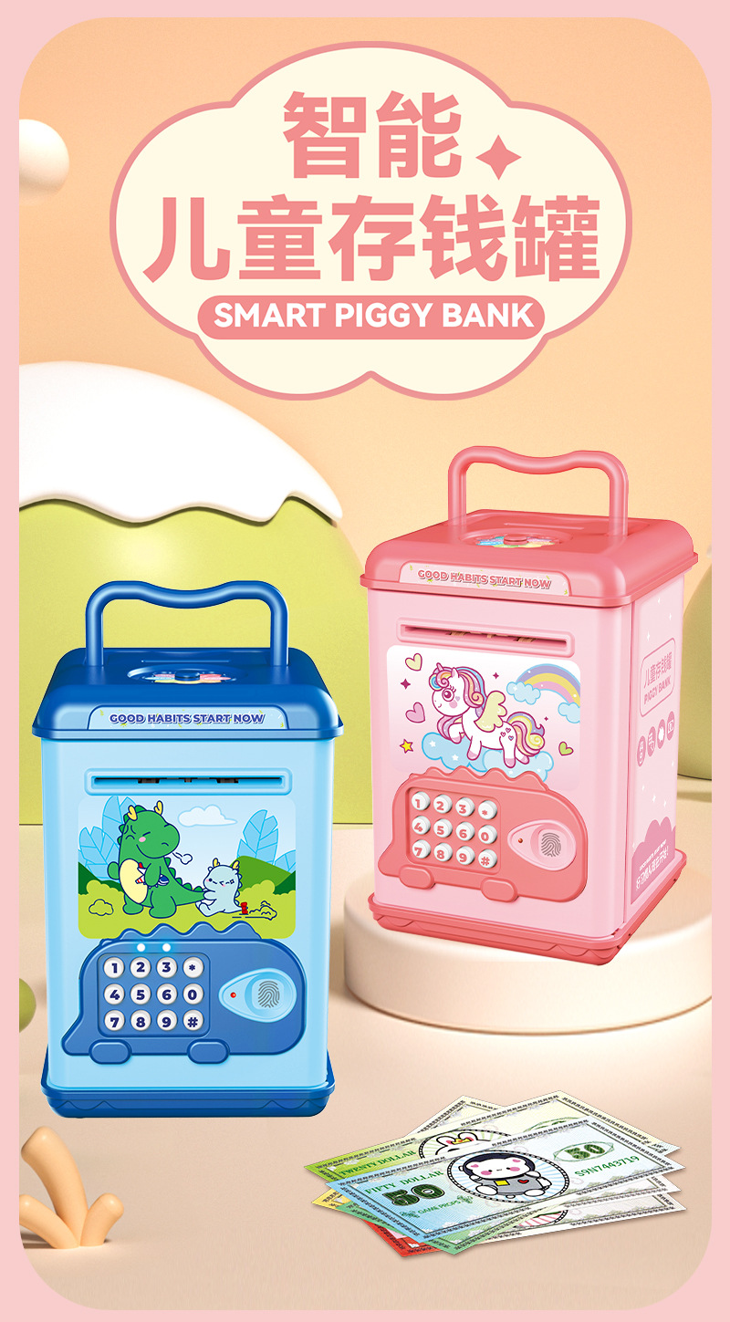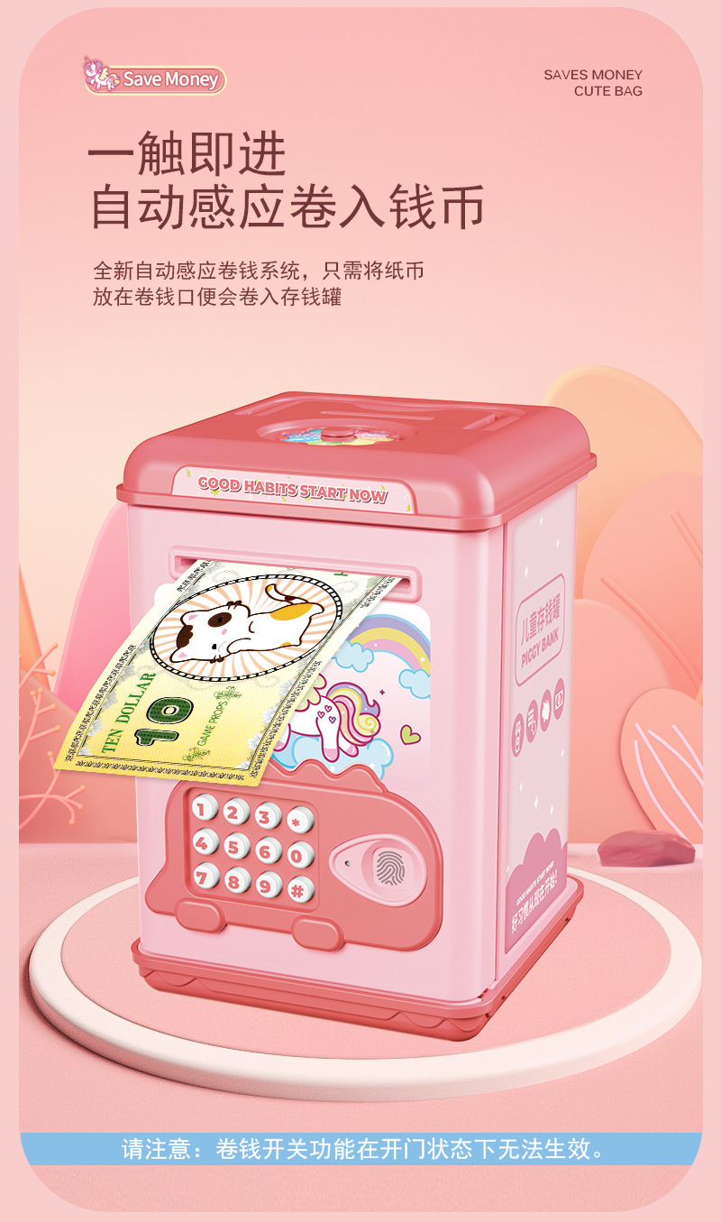 fingerprint password saving pot [automatic money roll] pink 6802