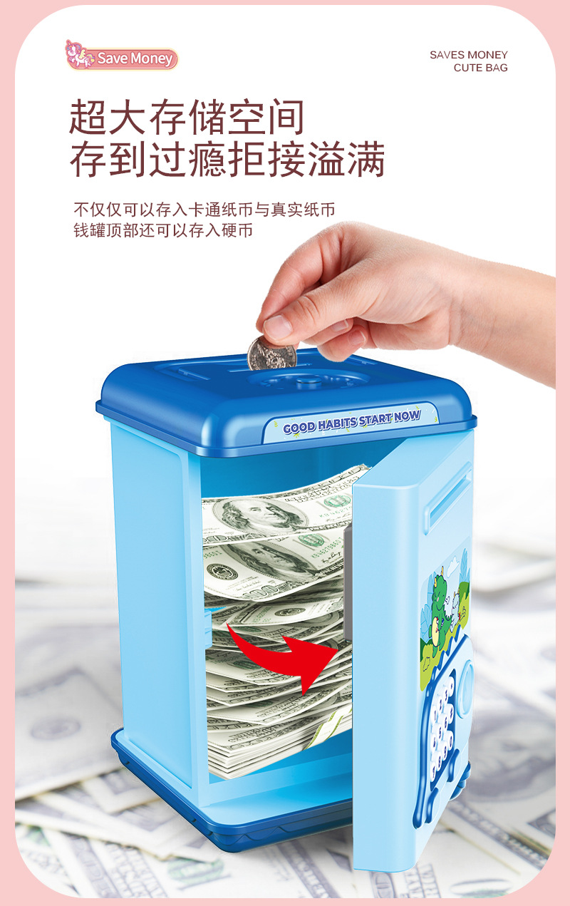 fingerprint password saving pot [automatic money roll] blue 6709
