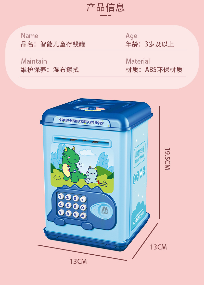 fingerprint password saving pot [automatic money roll] blue 6802