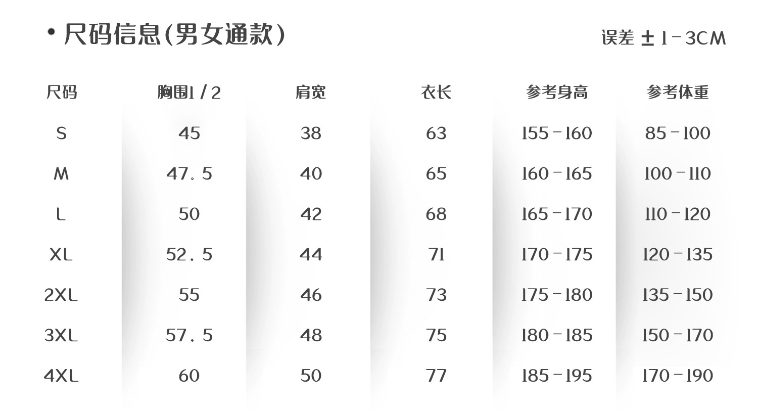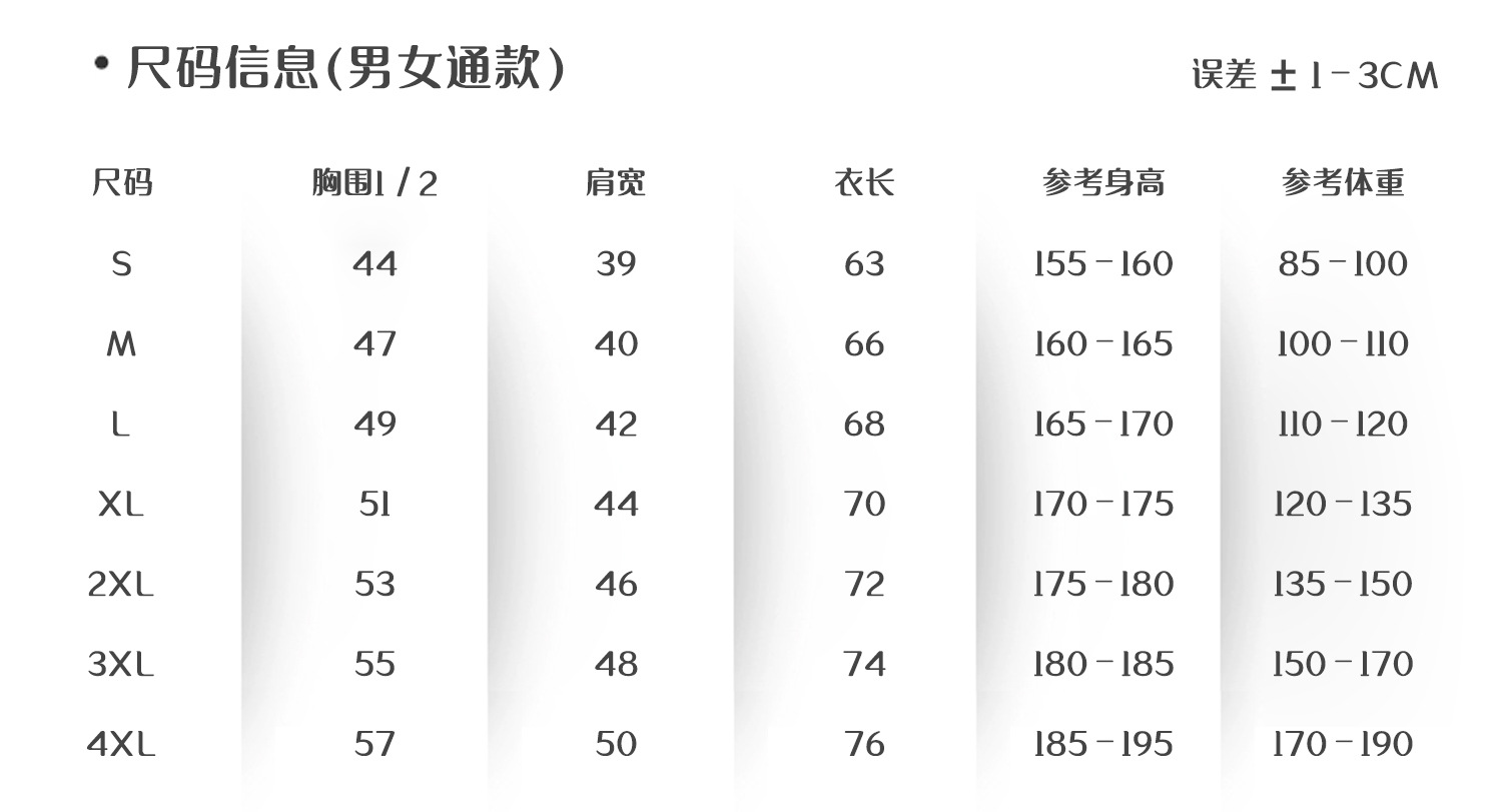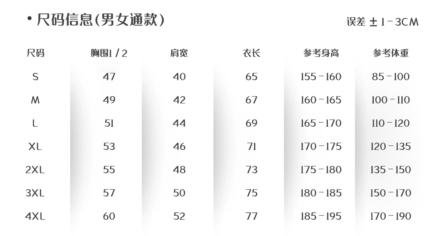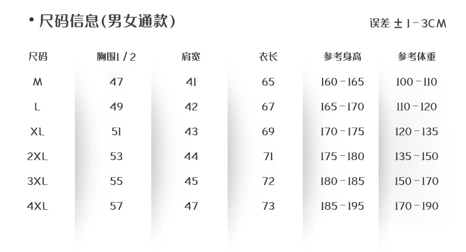 | xxl | ¥54.0 | 9999 piece available |