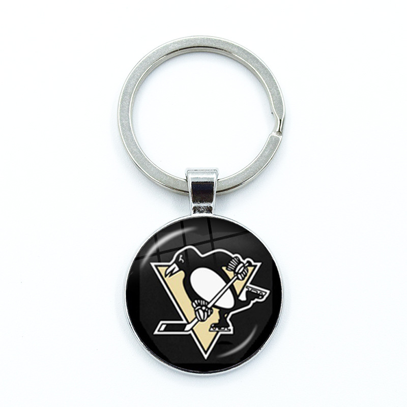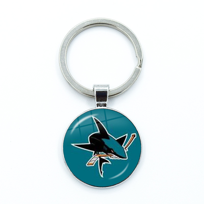 foreign trade popular style mixed nhl hockey team keychain time stone key chain nhl logo keychain 中文版