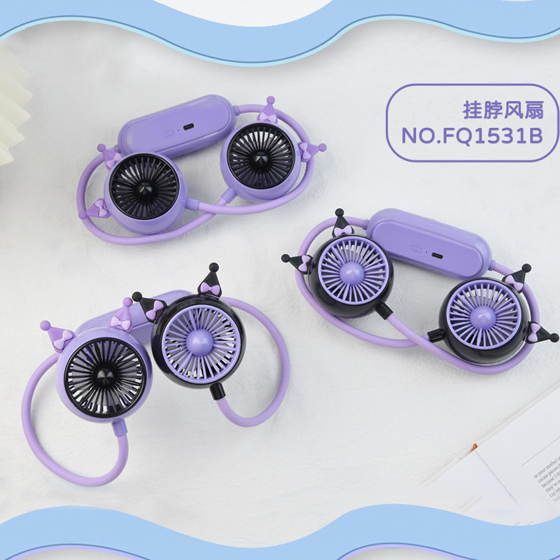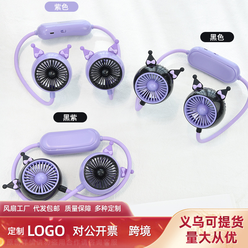 new cartoon lazy halter little fan mute usb charging outdoor sports cute student children neck hanging fan