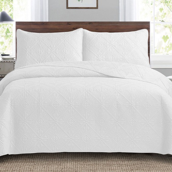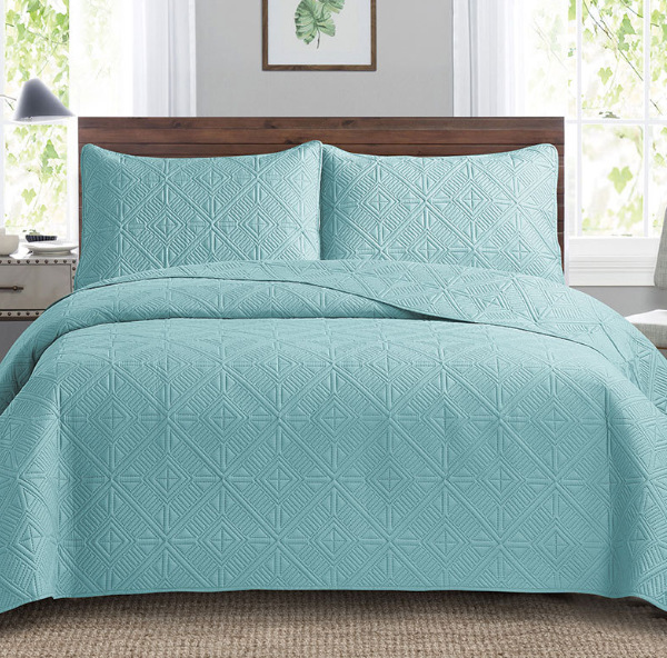 foreign trade quiltedtextiles cross-border bed sheet ultrasonic embossing craft bedding three-piece washable double-sided bedspread 中文版