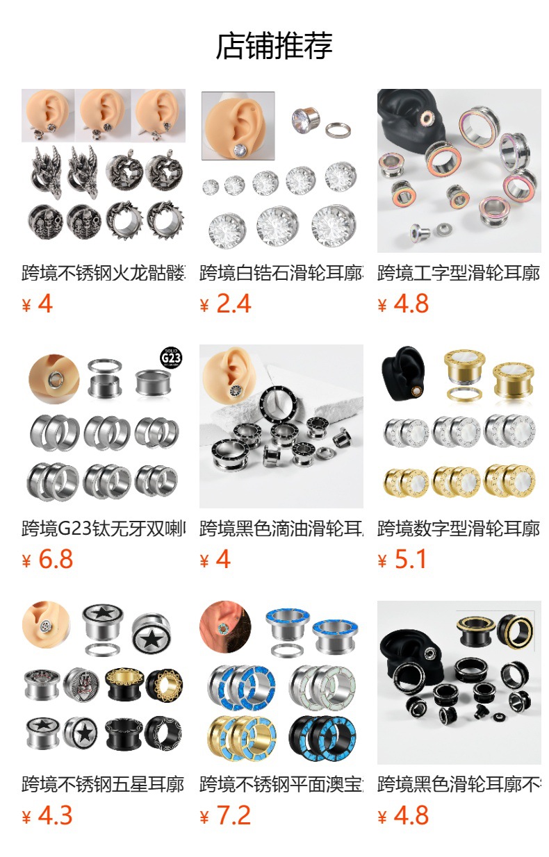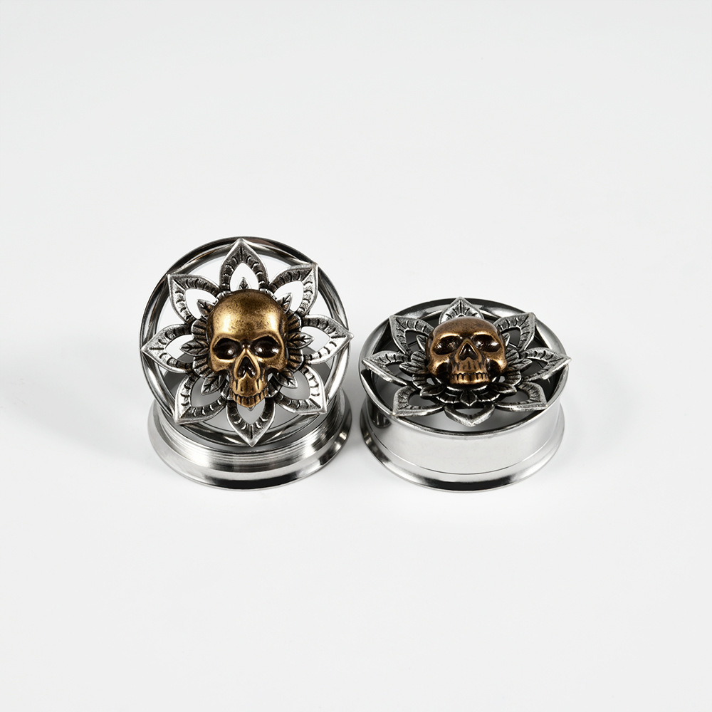 .Name: Cross-border stainless steel snake-wrapped earlobes, copper ghost head butterfly wheel ear expansion, external thread puncture ear expansion