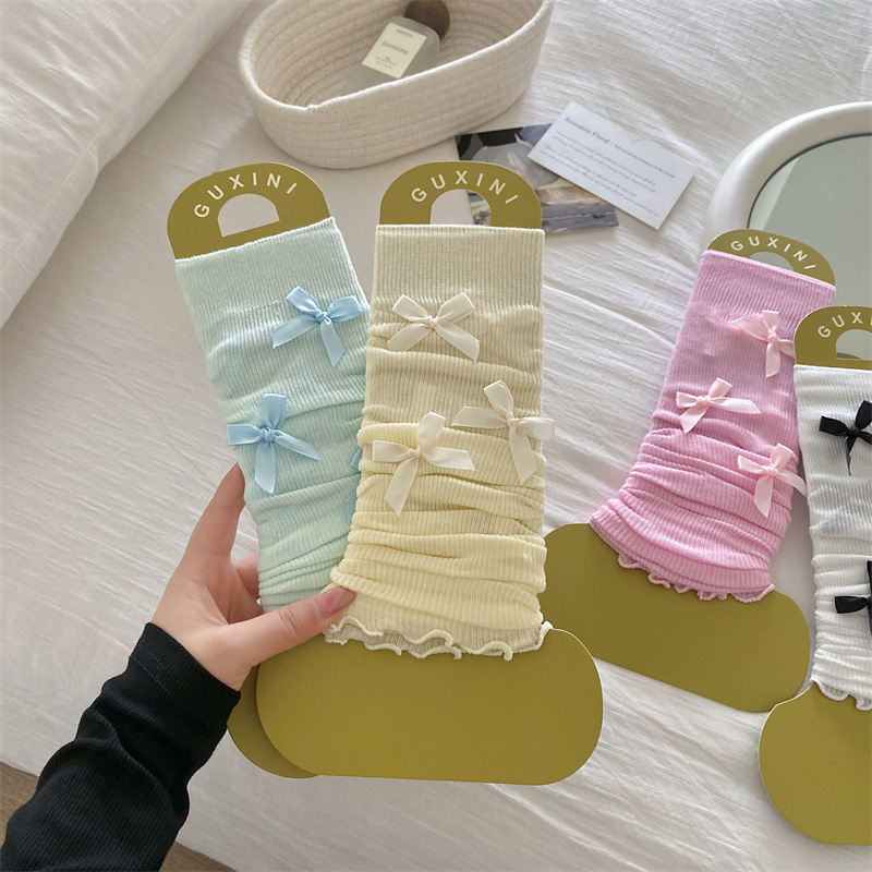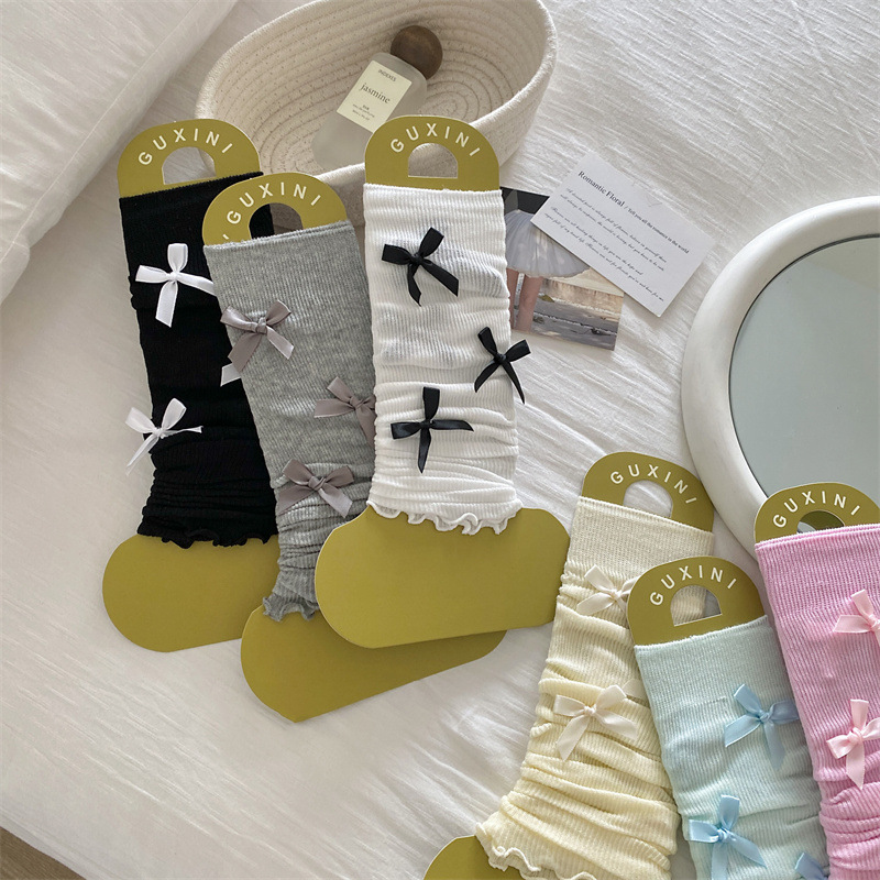 ballet style pile style spring/summer foot sock women's bow sun protection leg gaurd set white jk ice silk calf socks mid-calf
