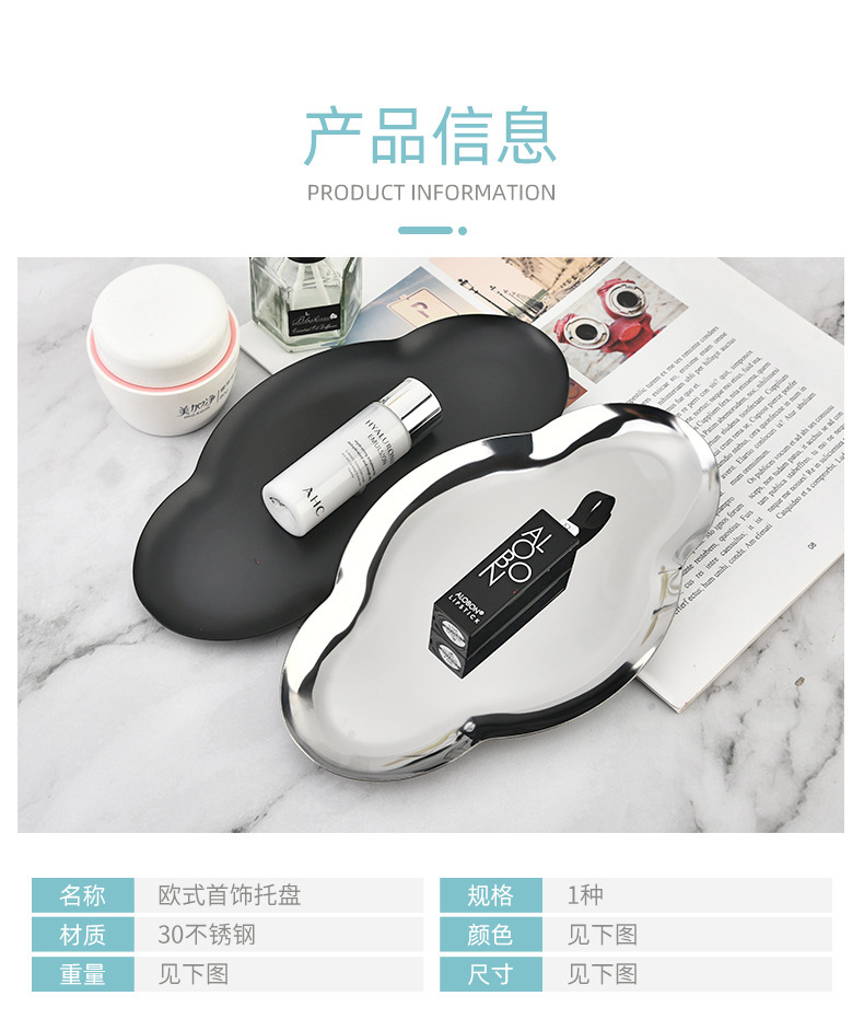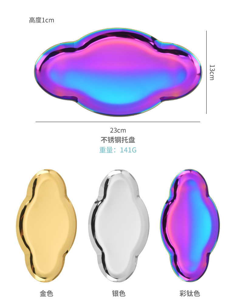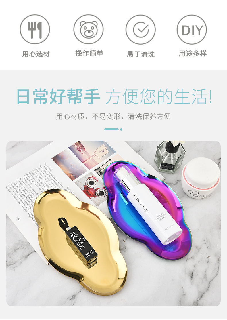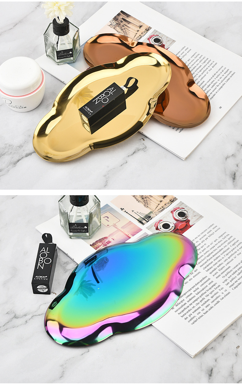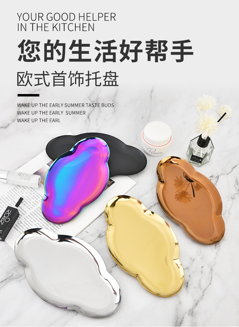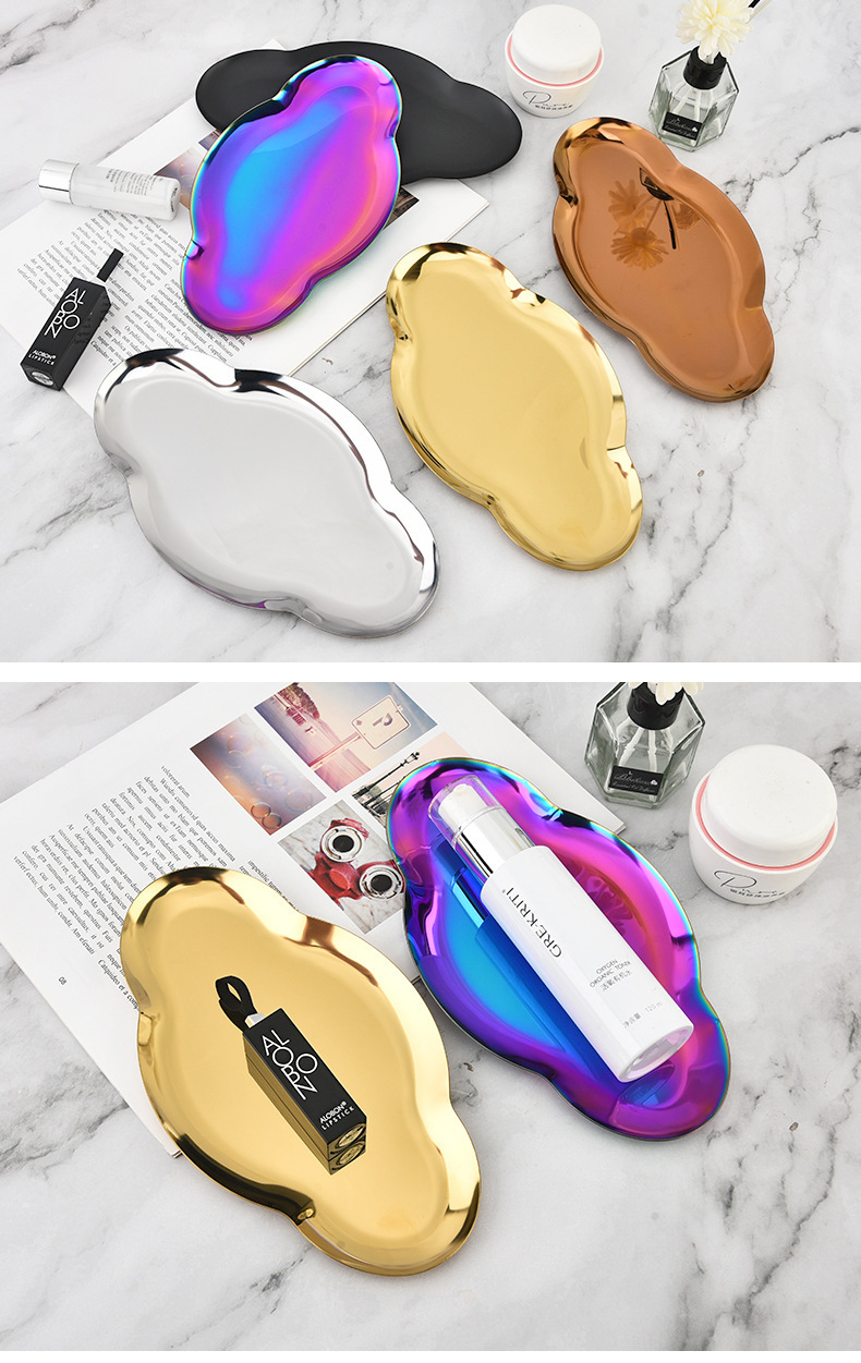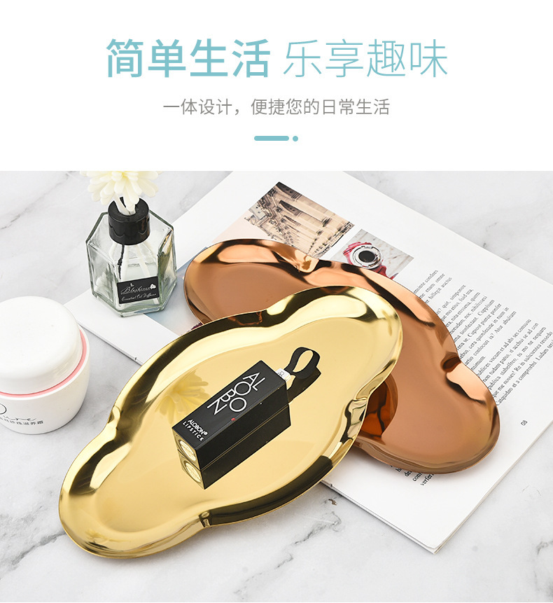 Nordic Ins Oval Tray Stainless Steel Golden Creative Cloud Tray Jewelry Tray Metal Household Storage Tray 中文版