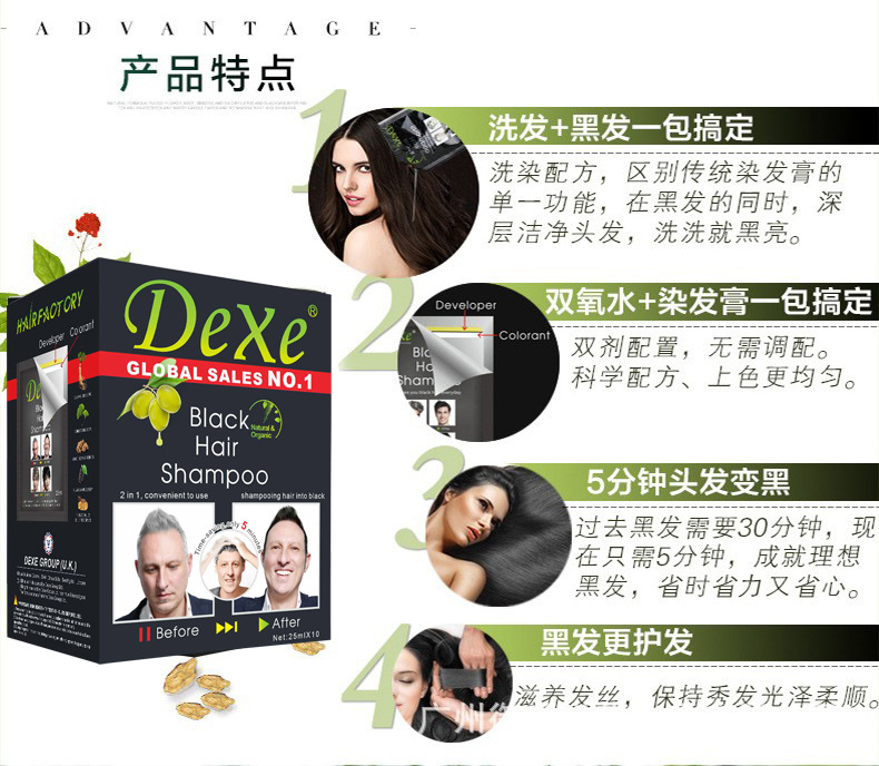 Dexe Cross-border English Hair Dye Plant Black Covering Gray Hair One Black Export Hair Dye Cream