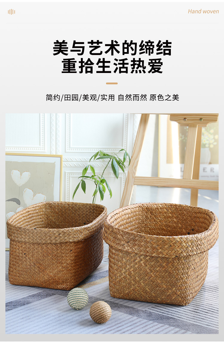 large capacity straw woven storage basket japanese household laundry basket bedroom clothes toy finishing storage basket knitted basket 中文版