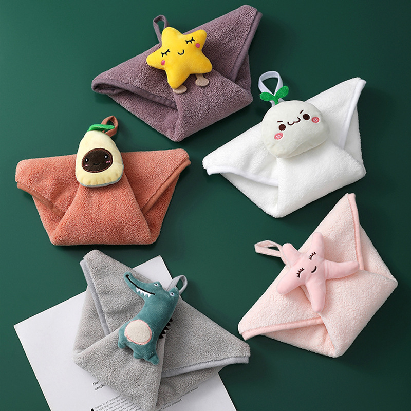 coral fleece hand towel wholesale absorbent hanging kindergarten small towels cute handkerchief kitchen bathroom hanging square towel