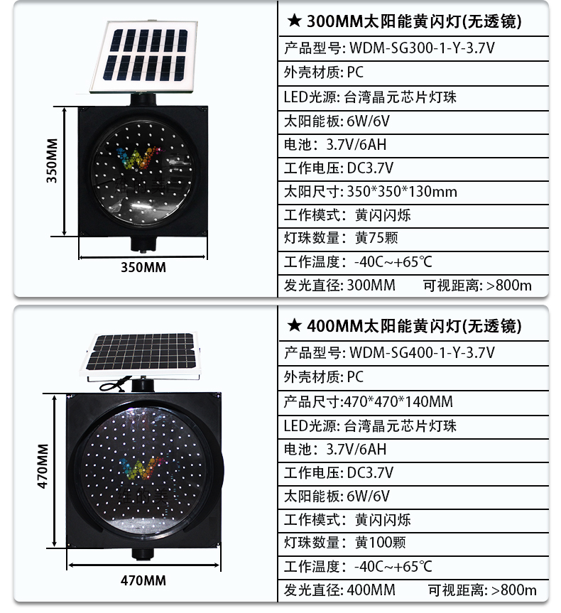 400 type solar yellow flashing light (6w/6v-6ah/3.7v) led 100 pcs