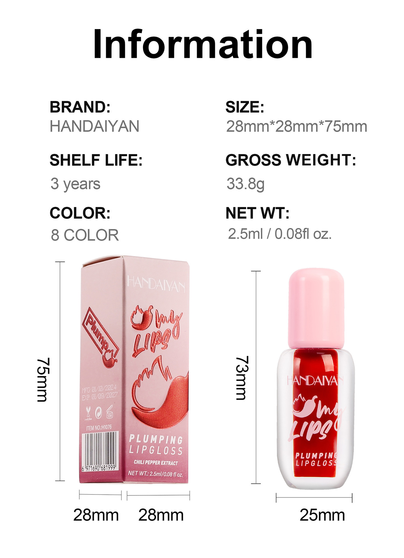 Net Content: 2.5ml, Gross Weight per Unit: 33g