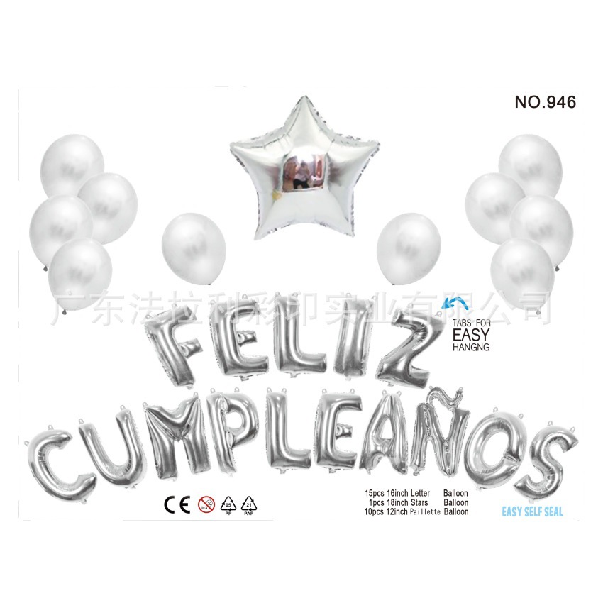 16-inch Spanish birthday letter balloons - 15 pieces.
