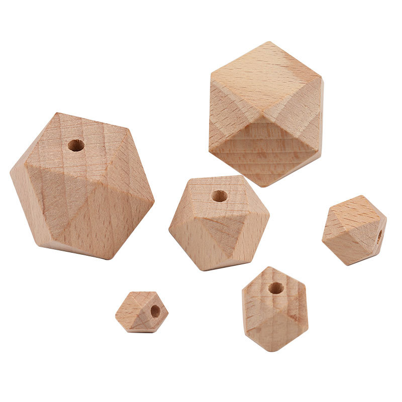 原木色榉木八角木珠diy饰品配件菱形珠子多边形木珠10-20mm散珠批