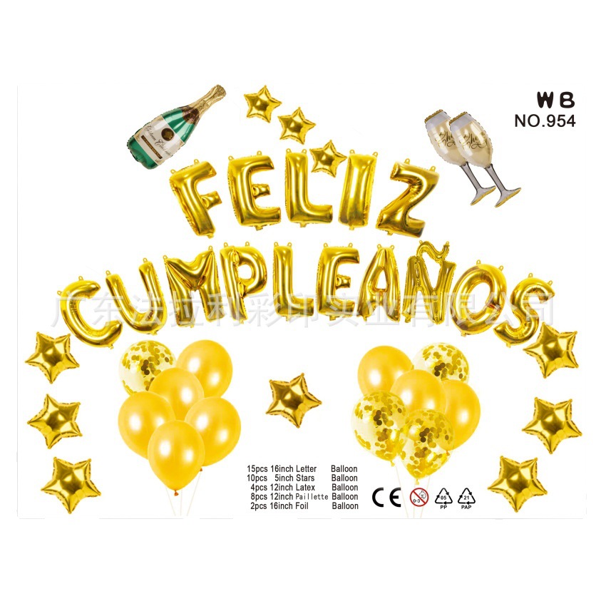16-inch Spanish Birthday Latex Balloon Kit (39 PCS)