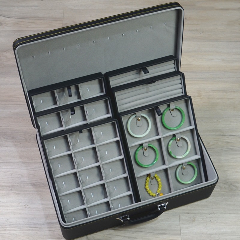 black outside and gray inside (3 necklaces, 2 bracelets, 1 ring tray)