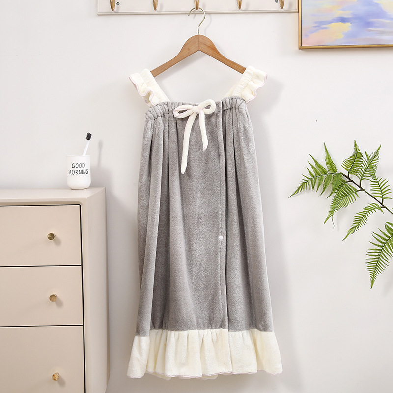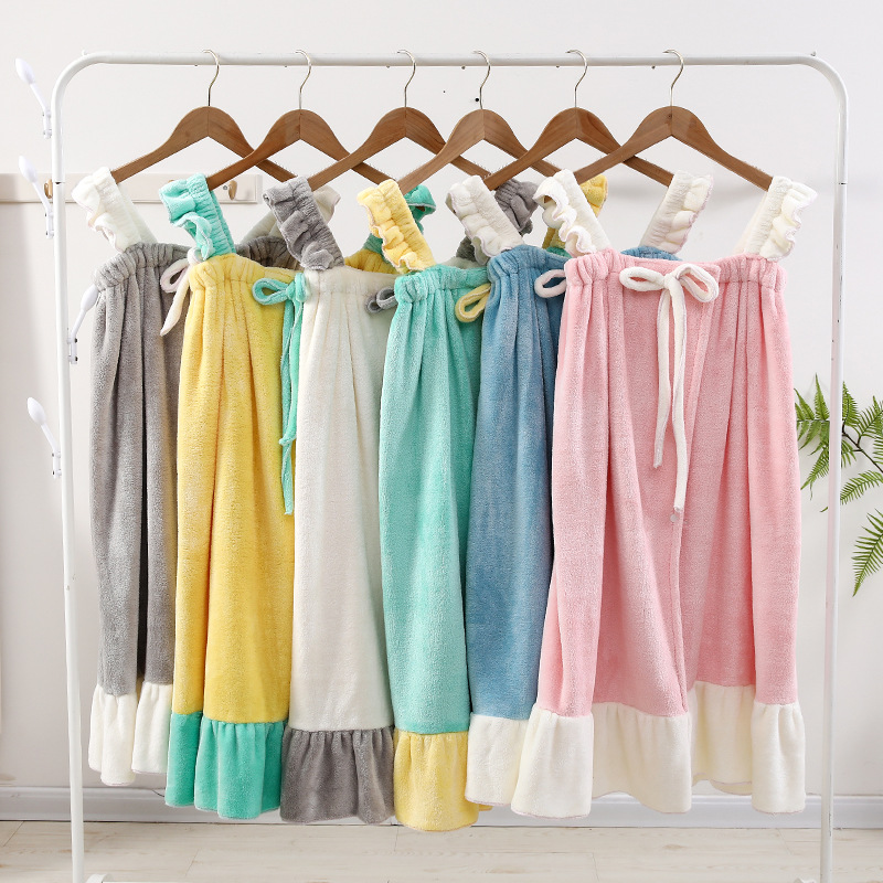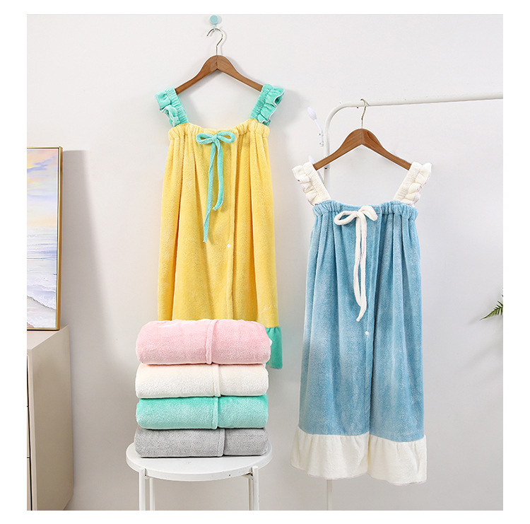 2024 new nano velvet suspender skirt soft absorbent coral fleece bath skirt wearable bath towels bathrobe can be worn and wrapped