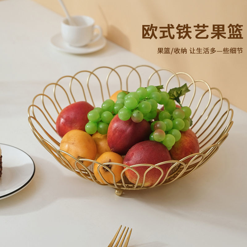 european fashion iron art fruit basket creative simple living room coffee table household desserts snack storage basket factory wholesale