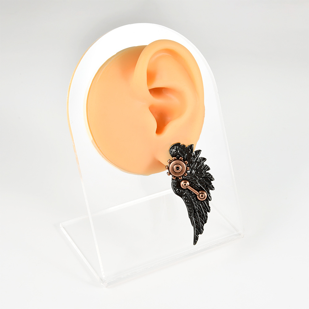 .Name: Cross-border new model gear black wing earlobe Rose gold droplet integrated puncture copper ear expansion punk personality earlobe earrings