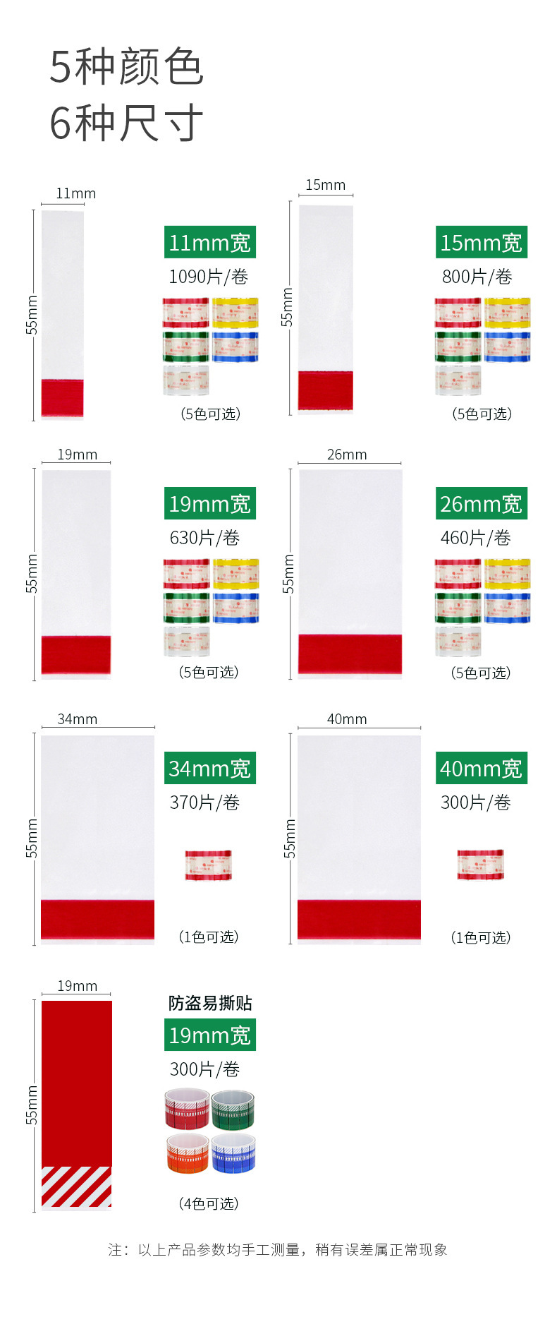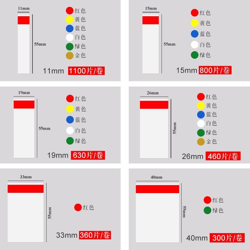 | 19mm * 55mm 630 pieces/roll red * red, green, blue, yellow, white, gold, etc. other colors can be customized | ¥7.02 | 456144 volume available |