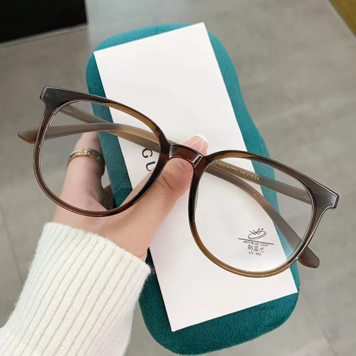 new brown frame glasses men's and women's korean-style fashionable anti-blue light glasses can be equipped with high degree plain glasses tr1