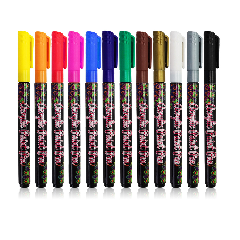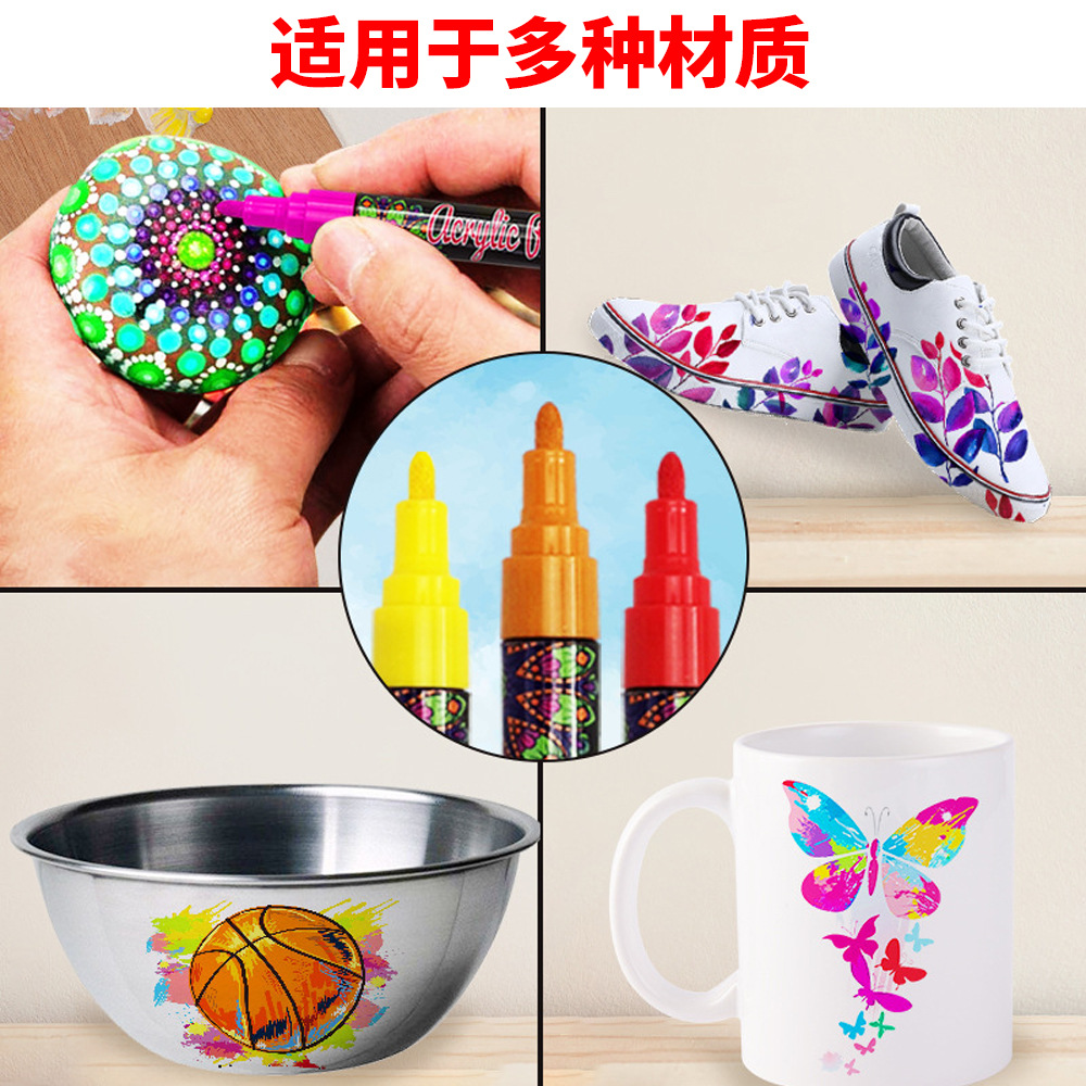 customized water-based acrylic marker pen ceramic pen 12-color graffiti water-based painting pen mark paint fixer suit 中文版