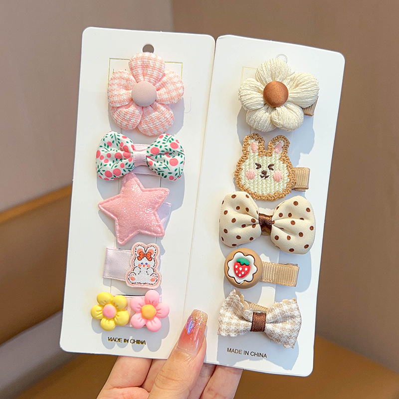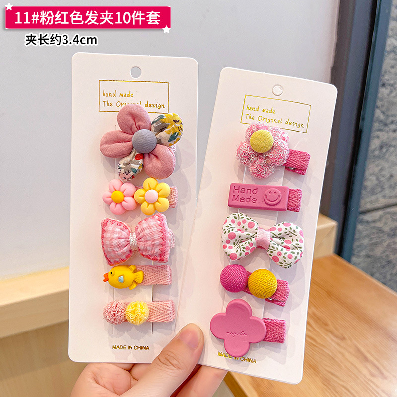 pink brown hairclip + cloth wrapper clip 10-piece set