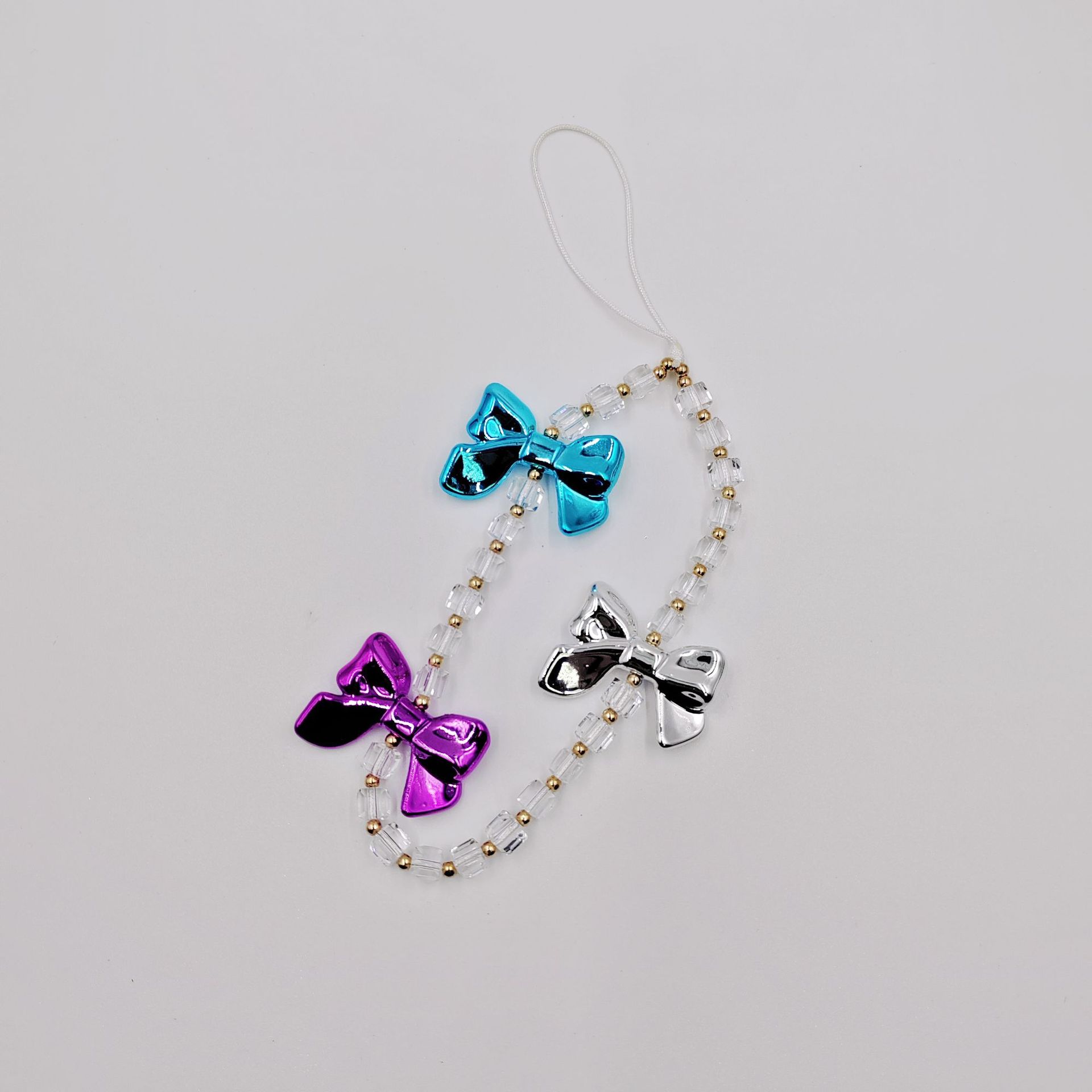 plating color bow tie square crystal phone lanyard anti-lost and anti-fall phone case beaded lanyard short mobile phone charm wholesale