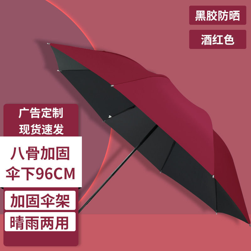 [automatic] 8-bone black plastic umbrella wine red