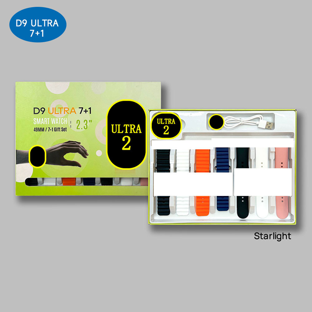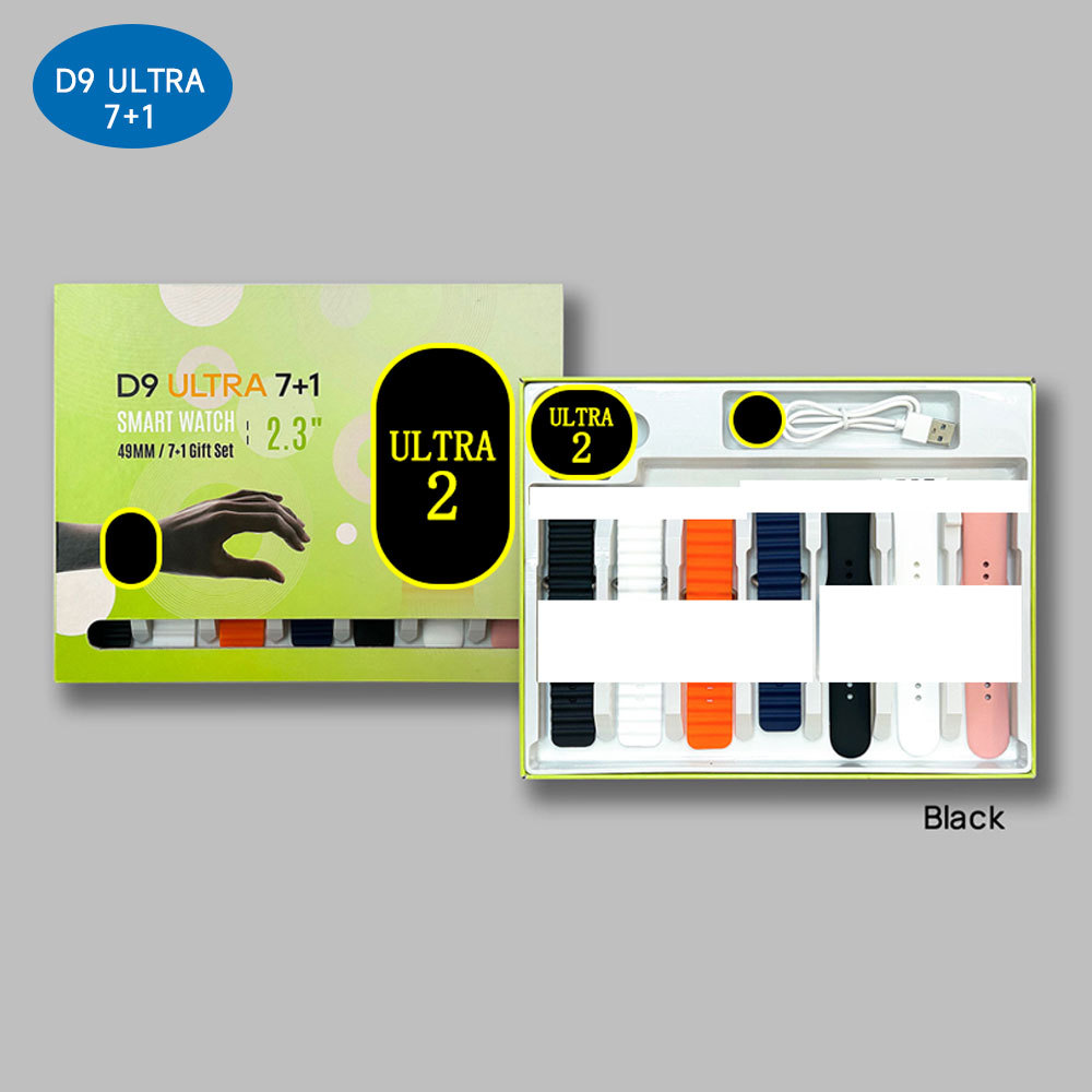 New D9 ULTRA7+1 Smart Watch Kit with High-Definition Screen, Multi-Buckle Strap, Wireless Charging, and Gift Box