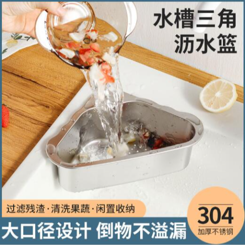 贸点出品MD-L003 304不锈钢沥水篮三角盘剩菜过滤网收纳架挂篮
