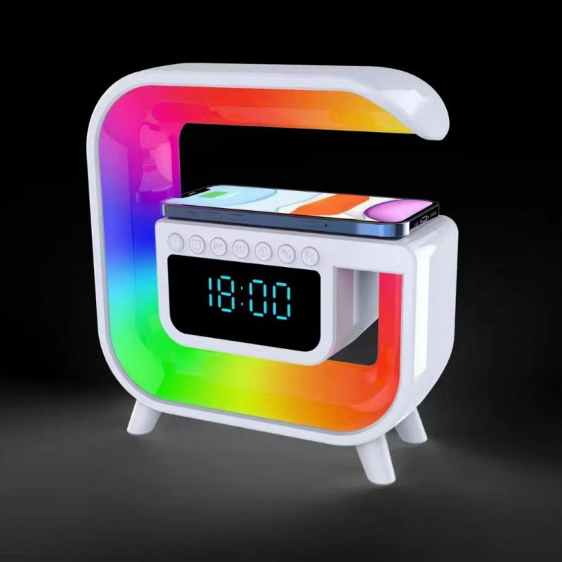cross-border hot new small g3 bluetooth speaker bt3401 colorful atmosphere light wireless charger clock alarm clock all-in-one machine 中文版