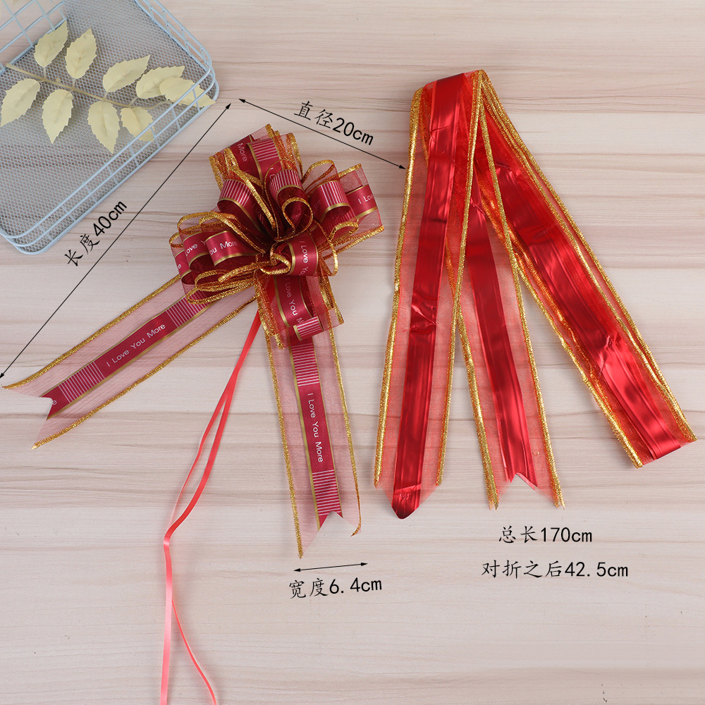 pplatte art wedding stair handrail decoration atmospheric golden edge wedding bow gift box packaging wedding car ribbon handmade flower 中文版