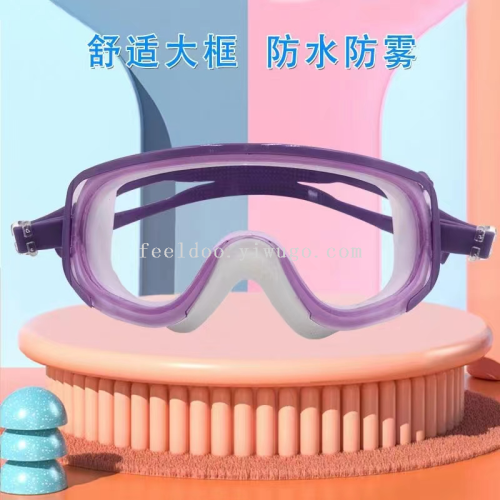 swimming goggles wholesale waterproof anti-fog hd plain myopic children's swimming goggles large frame swimming glasses swimming product 中文版