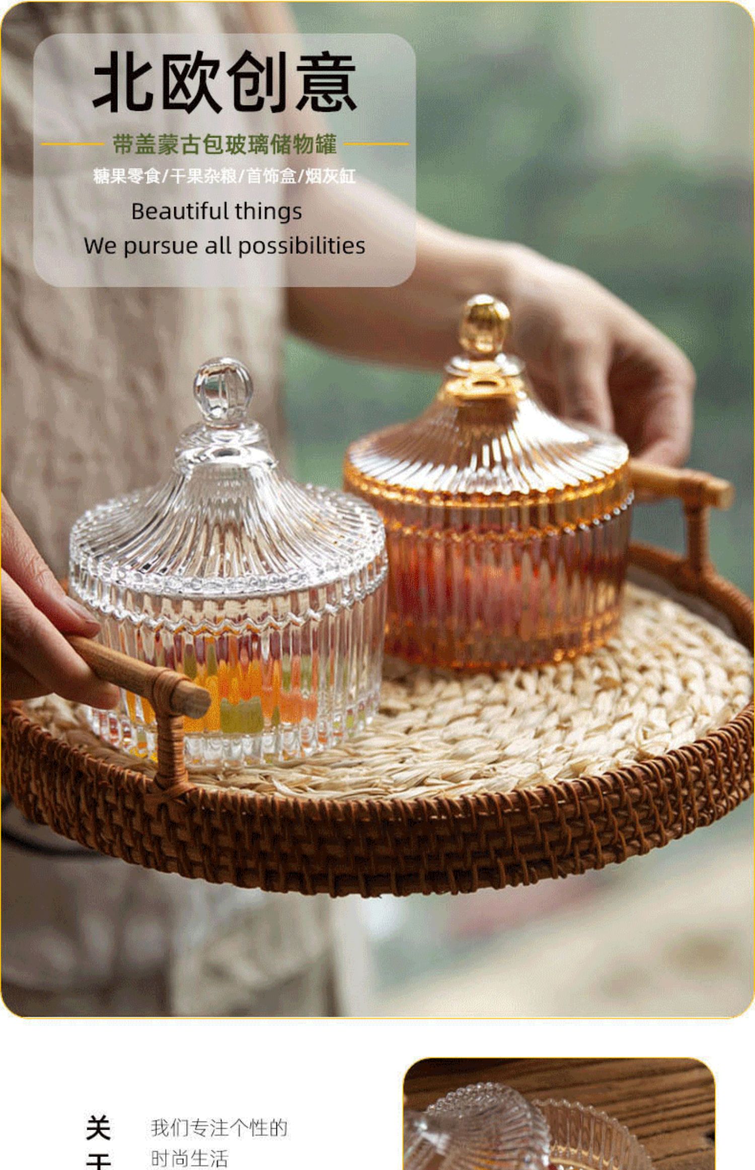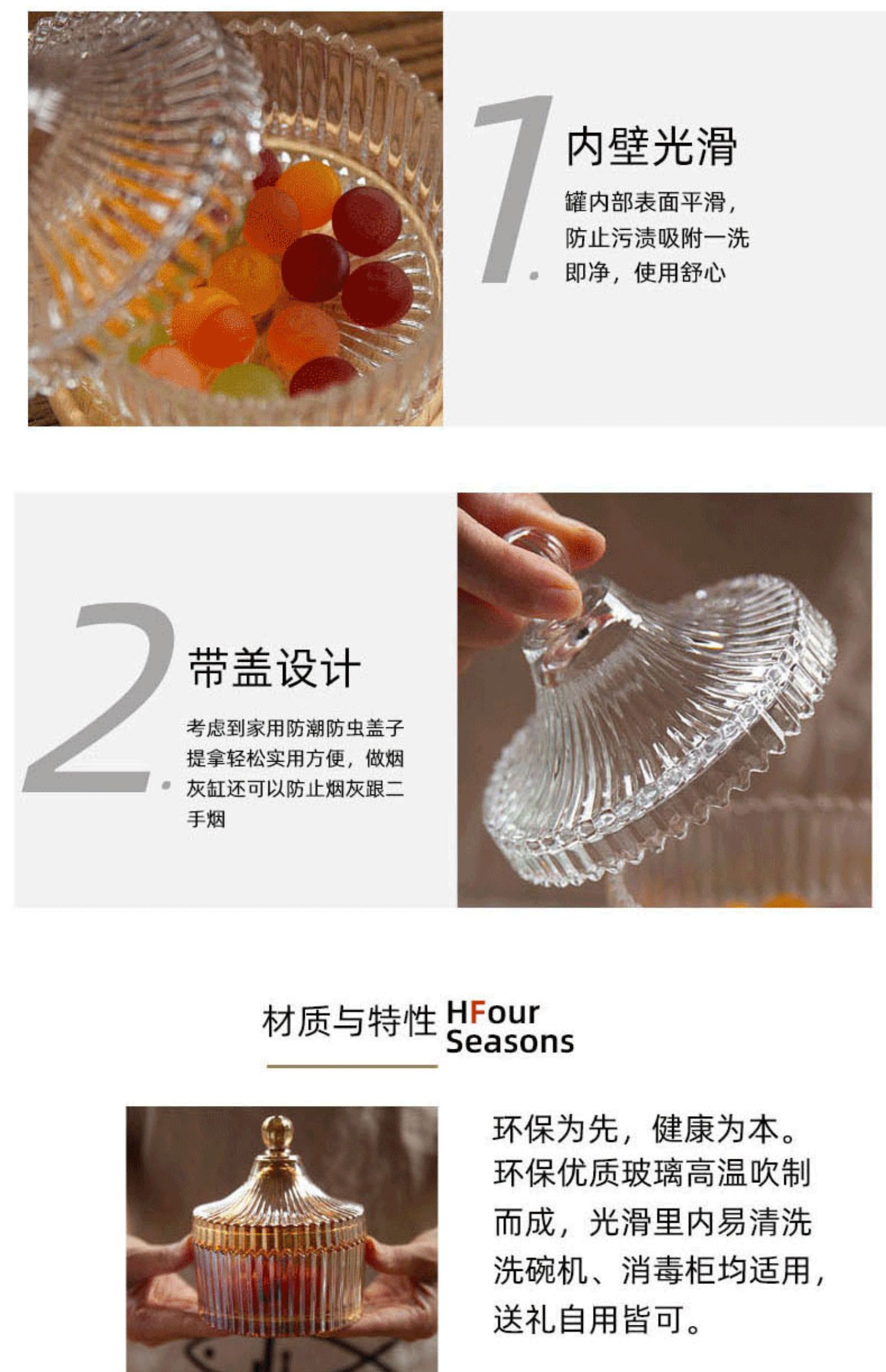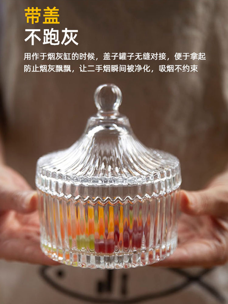 japanese style four seasons personality household multifunctional lidded glass storage jar candy snack jar jewelry box ashtray 中文版