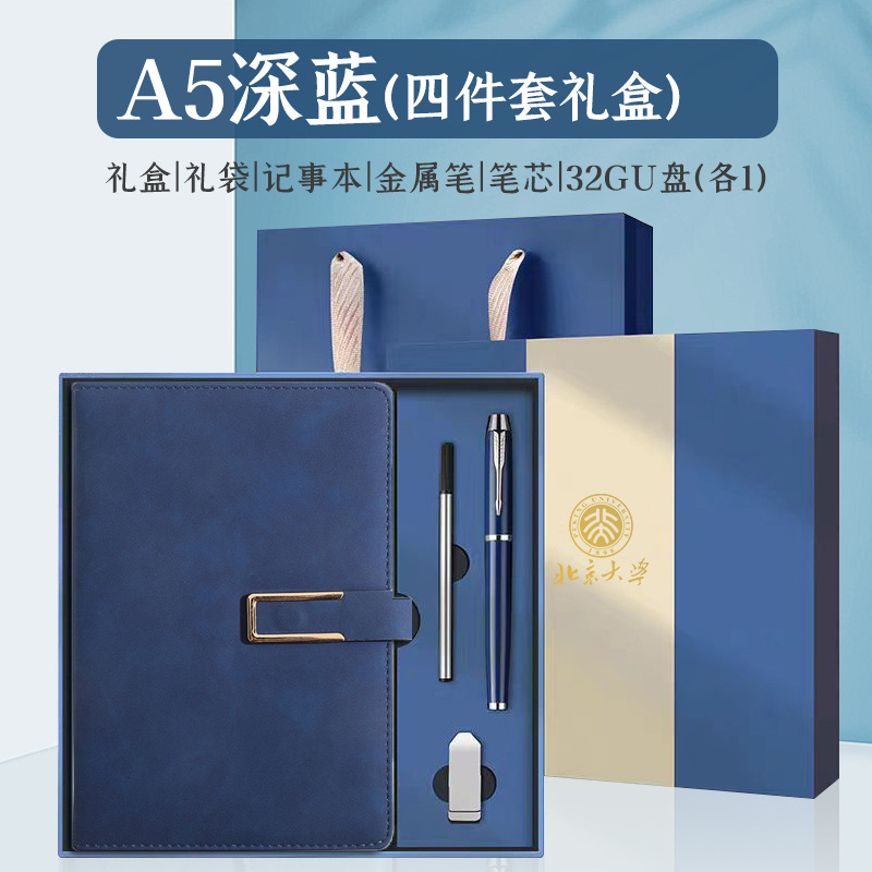 u-shaped buckle-4 suit-dark blue [notebook + metal pen + refill + usb flash disk]]